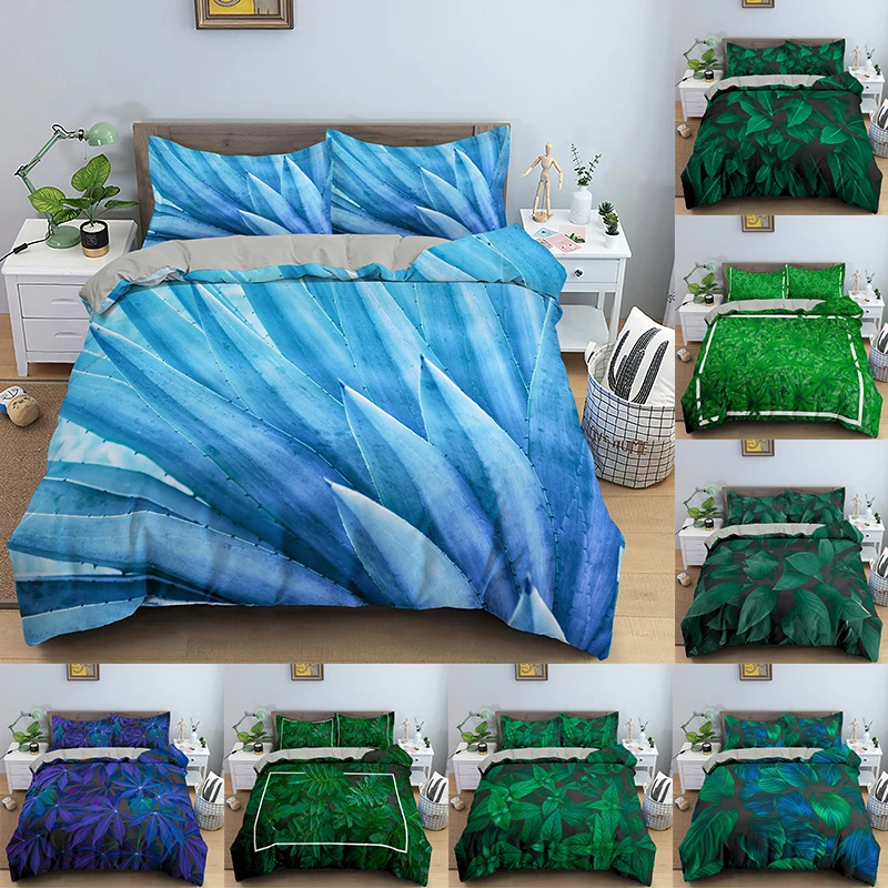 Комплекты постельного белья с 3D принтом зеленых листьев, пододеяль...