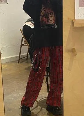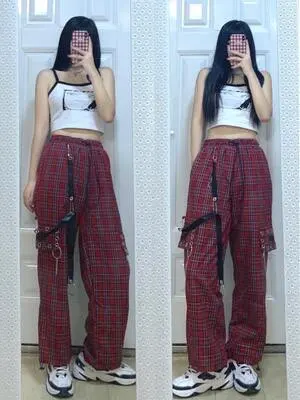 Женские брюки-карго QWEEK, в стиле хиппи, с цепью, в стиле Харадзюку, Y2K, в стиле инди, хип-хоп, Японская уличная одежда