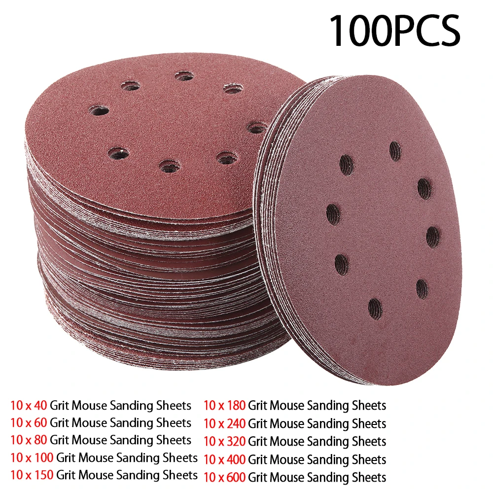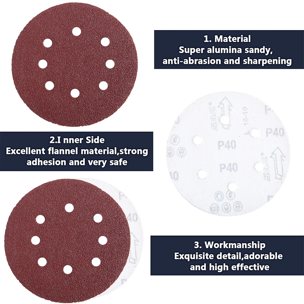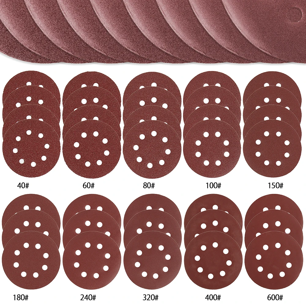 6080100 шт. 5 дюймов 125 мм круглая наждачная бумага восемь отверстий диск пескоструйные листы Зернистость 40-600 крючок и петля шлифовальные диски абразивные для полировки