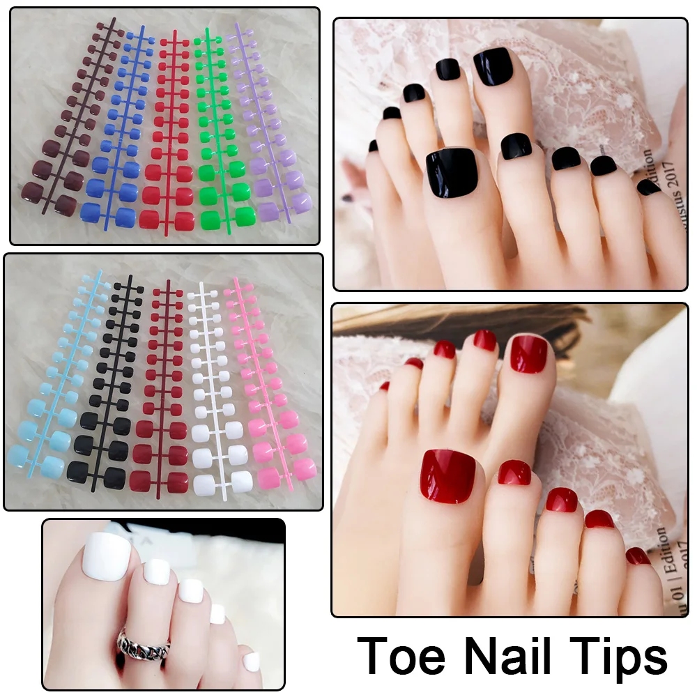 5 комплектов с коротким большим пальцем Типсы Полное покрытие пальцов ноги накладные ногти носок Поддельные Гвозди смешанные 5 цветов пальцов ноги и французский ногтей Нейл Арта, ногти на пальцах ног