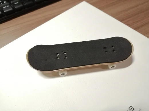 Многого не ожидал, конечно, и трещинка (куда ж без неё) на деке, и не сильно эстетичный вид после наклейки гриптейпа смущали, но работает ведь! Например, ollie выполнять куда проще, чем на аналогичном, но оригинальном techdeck, уж не знаю, с чем связано, с подшипниками или с материалом гриптейпа, но факт. Уж не знаю, на сколько его хватит, но за свою цену - роскошный)