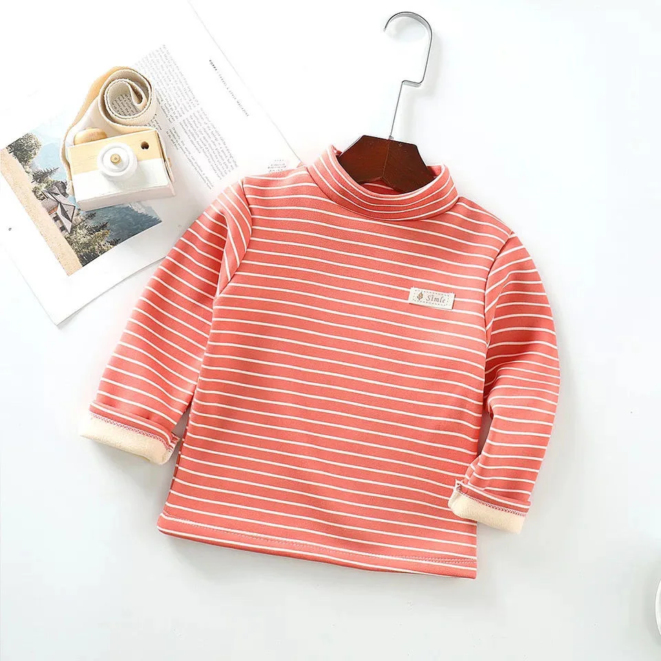 Обувь для мужчин и женщин на подкладке для девочек плюс плотный бархат осенние и зимние новые высокие Свитер с воротником для малышей, длинные рукава, Детская рубашка