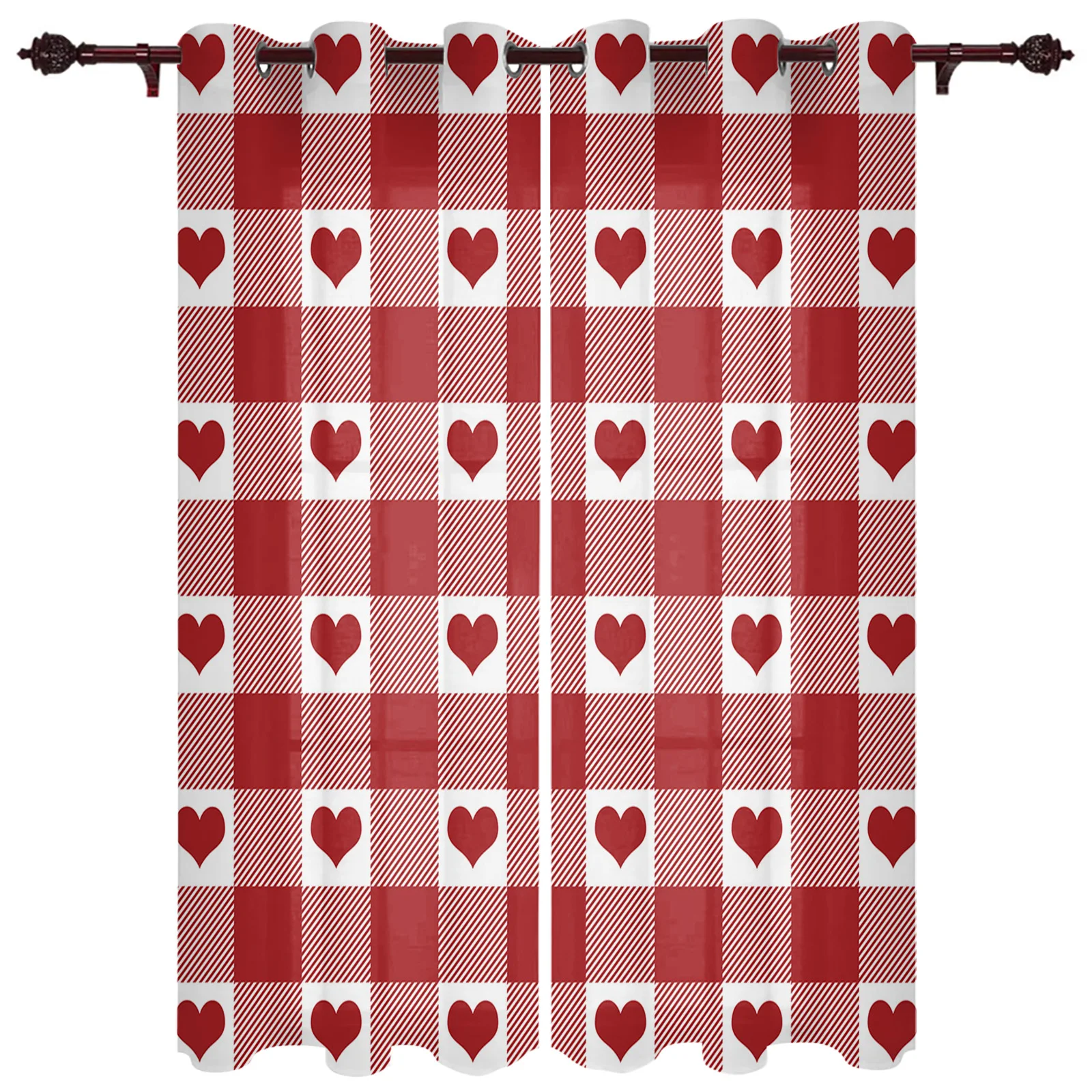 Шторы на окна в клетку с красным сердцем, занавески для спальни, кухни, панели для гостиной, Рождественский домашний декор