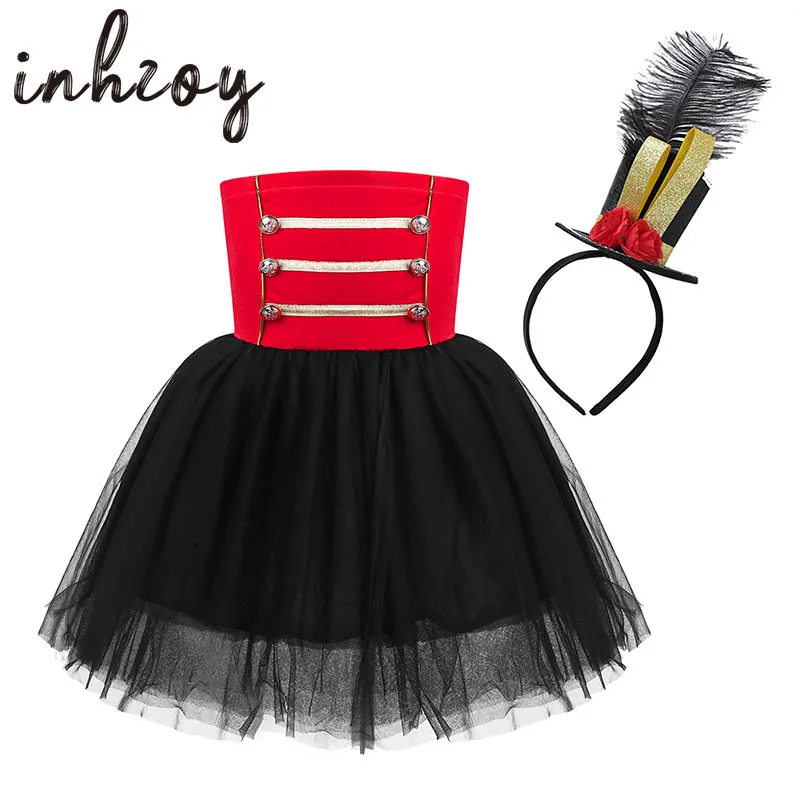 Одежда для девочек для Хэллоуина; Детское рождественское карнавальное Majorette производительность Щелкунчик манежа цирк костюм платье с пачкой из сетки с сердечком и повязка на голову