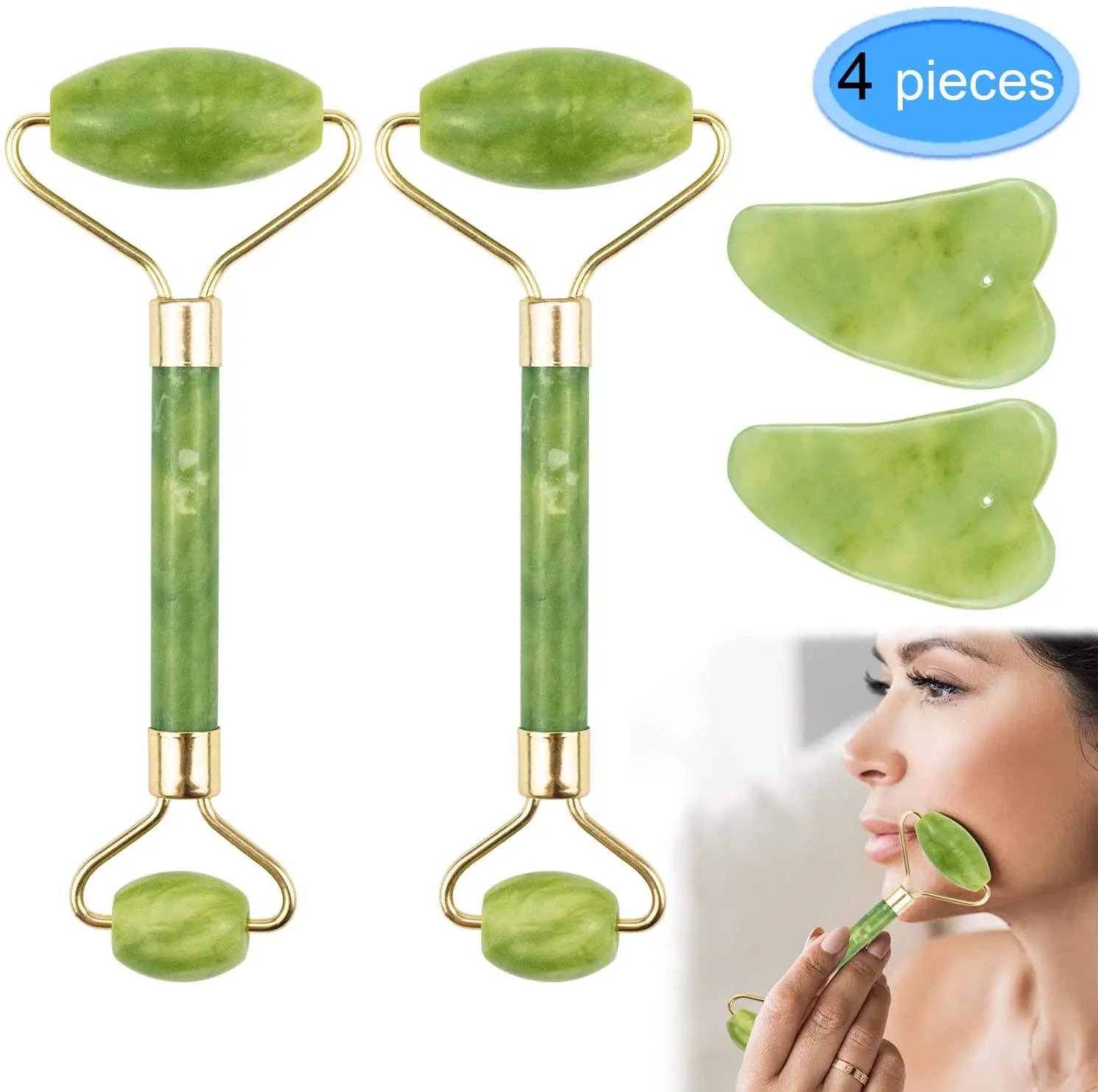 Уход за лицом массажный ролик из ЭВА доска гуаша Двойные головки Темный нефрит камень для подтяжки лица и тела кожи Релаксация похудения Красота шеи тонкие Лифт