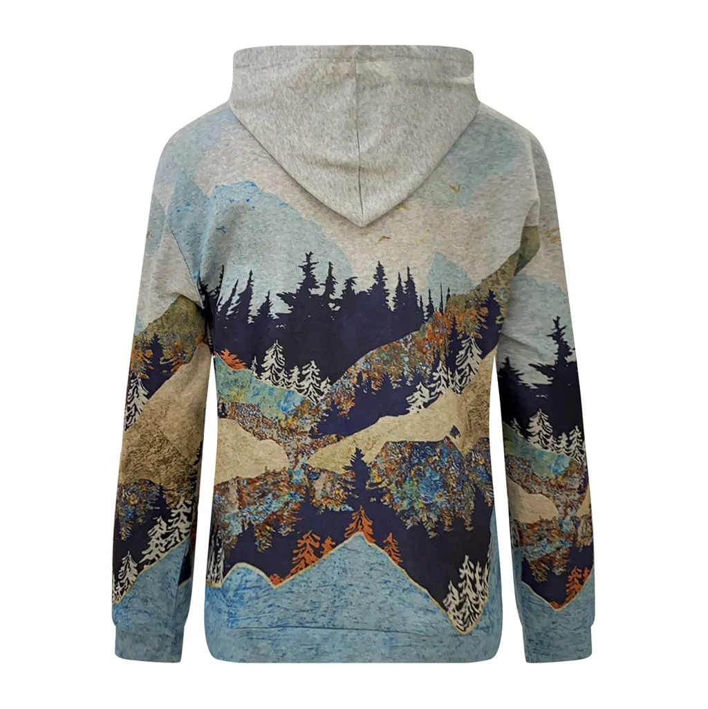 Эстетические толстовки для женщин Одежда для женщин; Большие размеры горный печатных пуловер с длинными рукавами Толстовка Sudaderas Mujer 2020 Худи