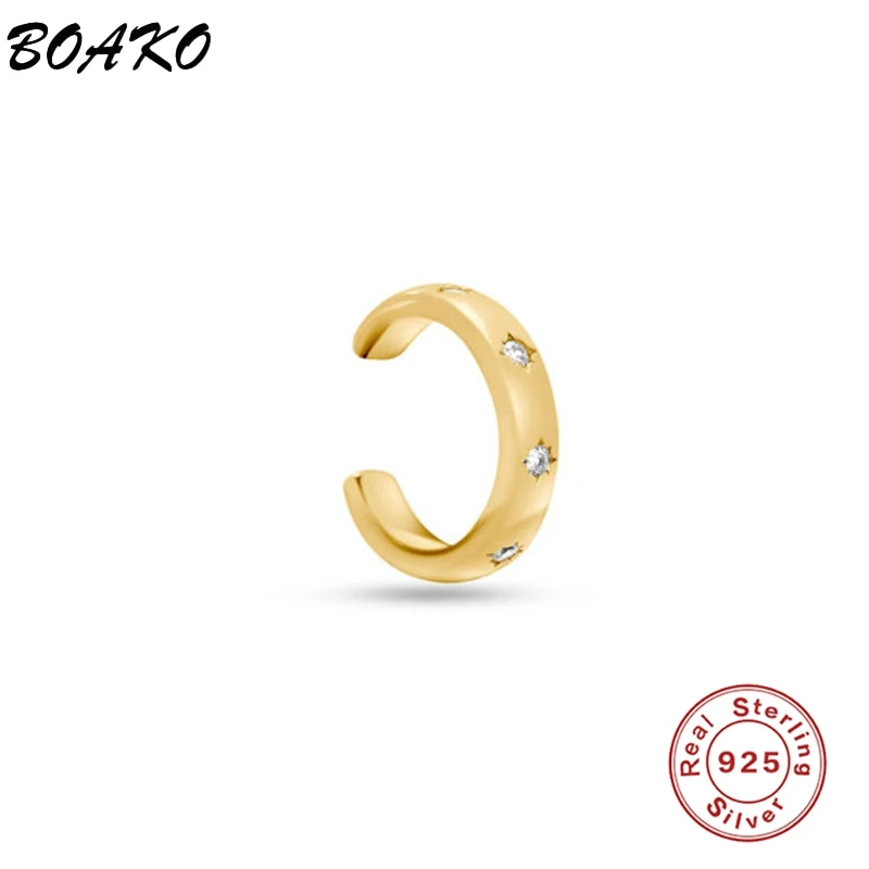 BOAKO класса люкс 925 стерлингового серебра Ясно циркониевый зажим серьги для женщин подарок ухо манжеты Новый дизайн без пирсинг зажимы для ювелирных изделий