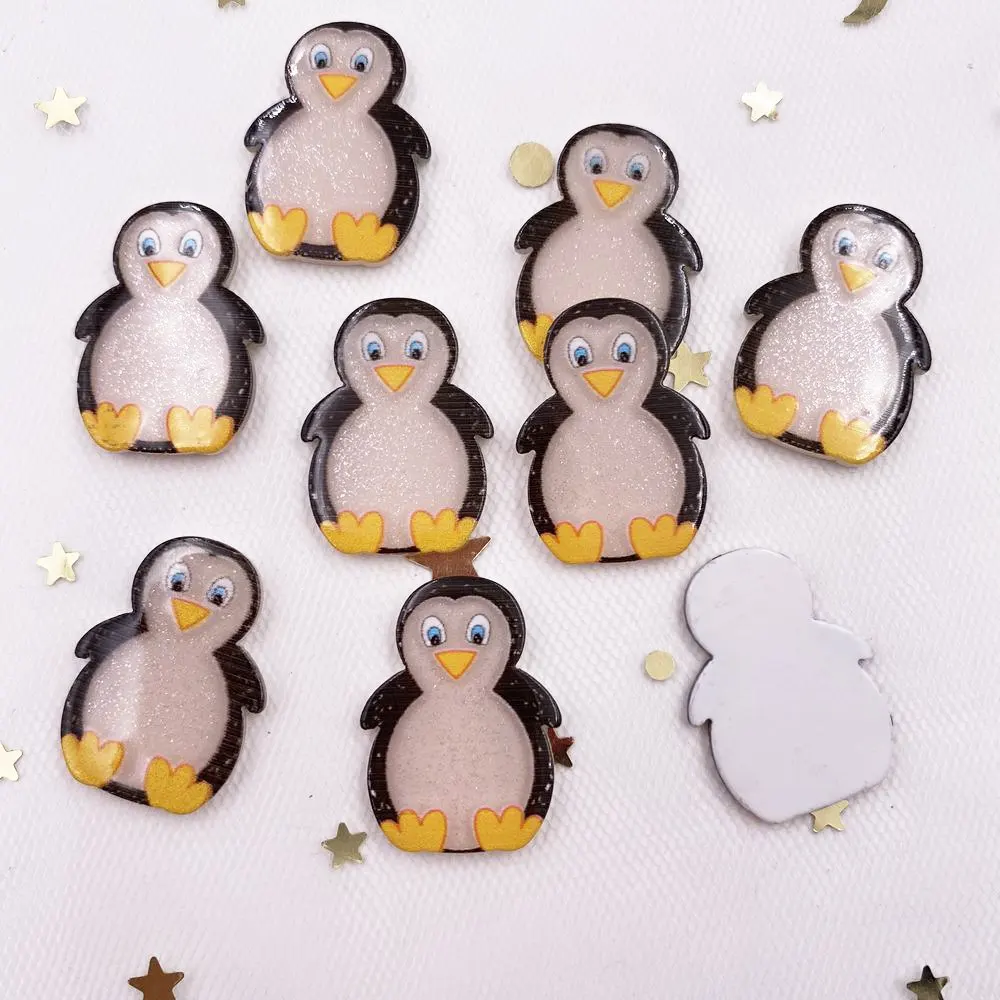 20 шт. Блестящий кавайный Красочный Милый Пингвин малыш с плоским основанием акриловый лист миниатюрный узор аппликация сделай сам декоративные украшения рукоделие
