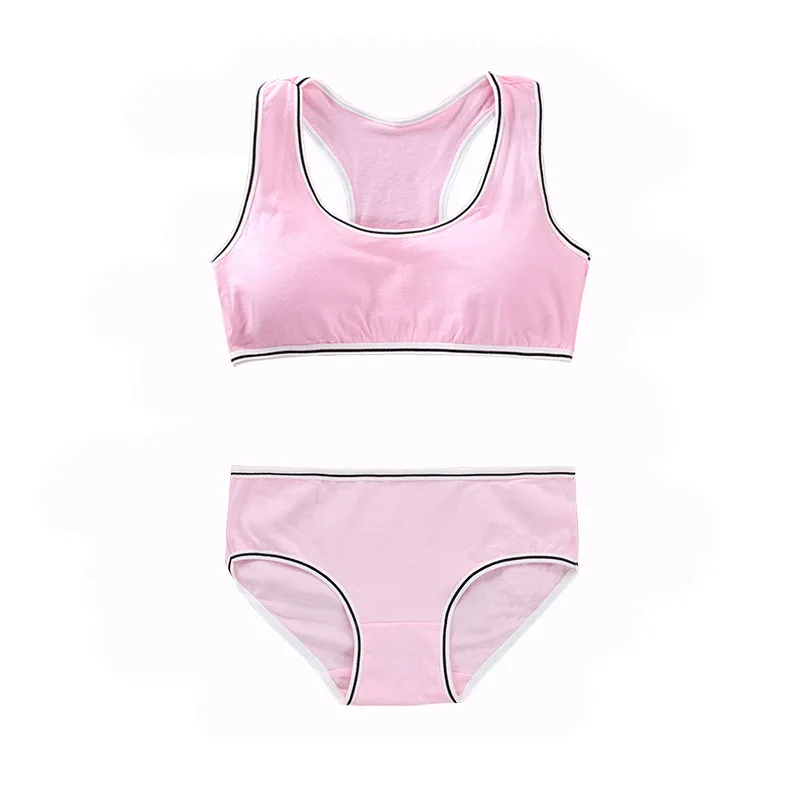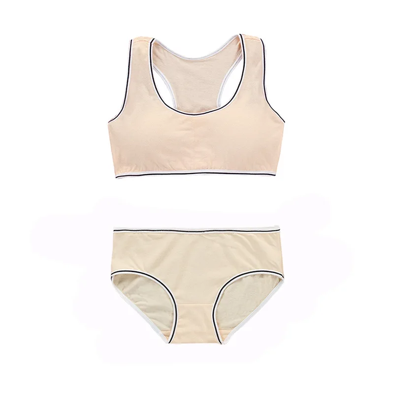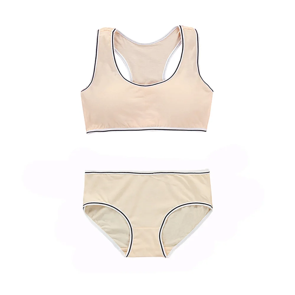 Комплект нижнего белья для подростков, спортивный топ, бюстгальтер, однотонные простые трусики, нижнее белье, костюм для женщин, Молодежный топ, Белый Топ, дышащий бюстгальтер без косточек