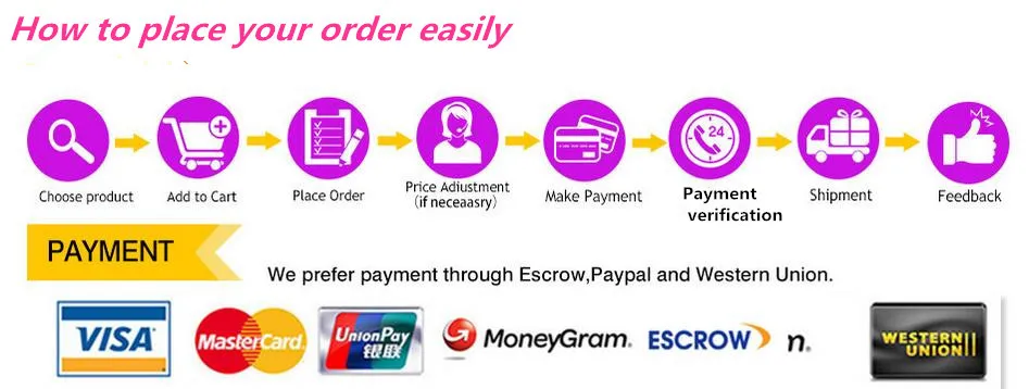 6. Время доставки: заказы будут отправлены в течение 48 часов, за исключением выходных. Бесплатная доставка обычно занимает около 7-35 рабочих дней в зависимости от отдаленных и отдаленных районов, если вам срочно нужно, мы предлагаем вам выбрать быструю доставку, например, DHL/Fedex/UPS, доставка занимает около 3-7 рабочих дней.
