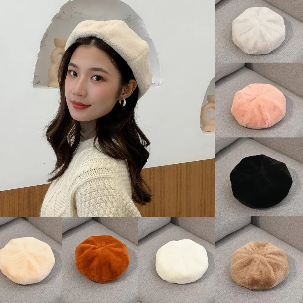 Берет женский шерстяной однотонный, Теплая Зимняя Шапка-бини во французском стиле для девушек, однотонная элегантная зимняя шапка # p