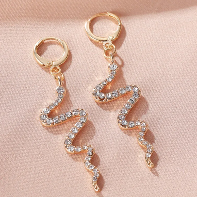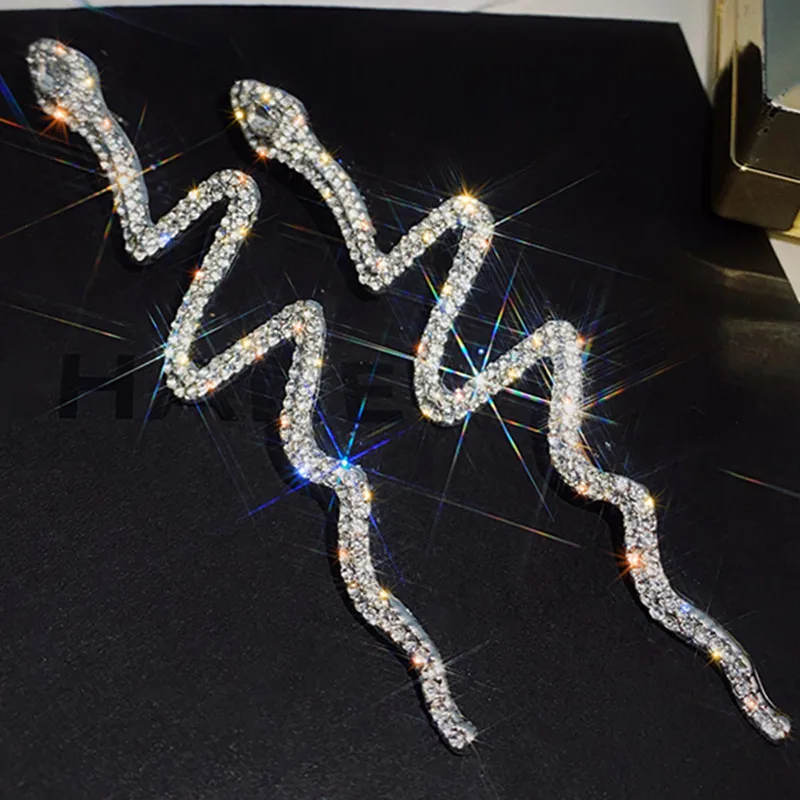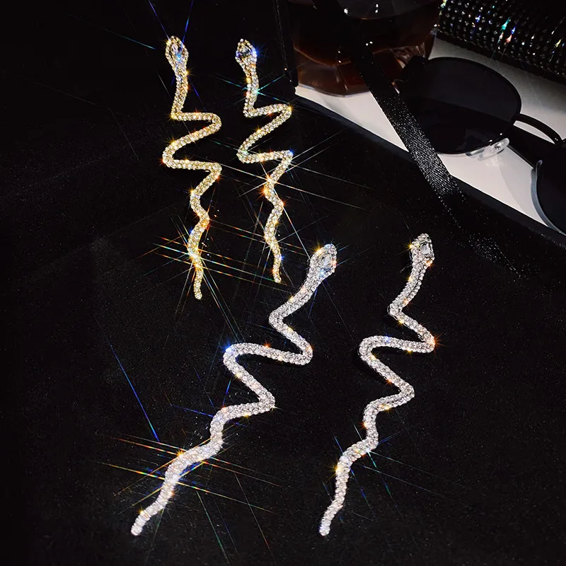 Серьги-подвески с блестящими кристаллами женские, длинные висячие серьги в форме змеи, стразы, свадебная бижутерия, хороший подарок