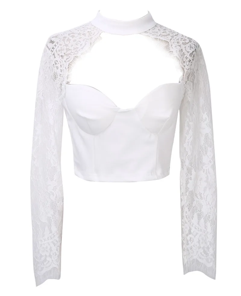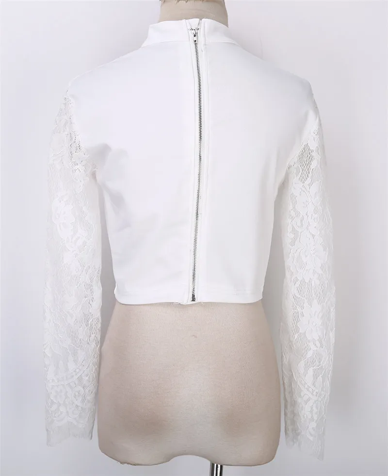 Кружевные укороченные топы с длинным рукавом, блузка, женская сексу...