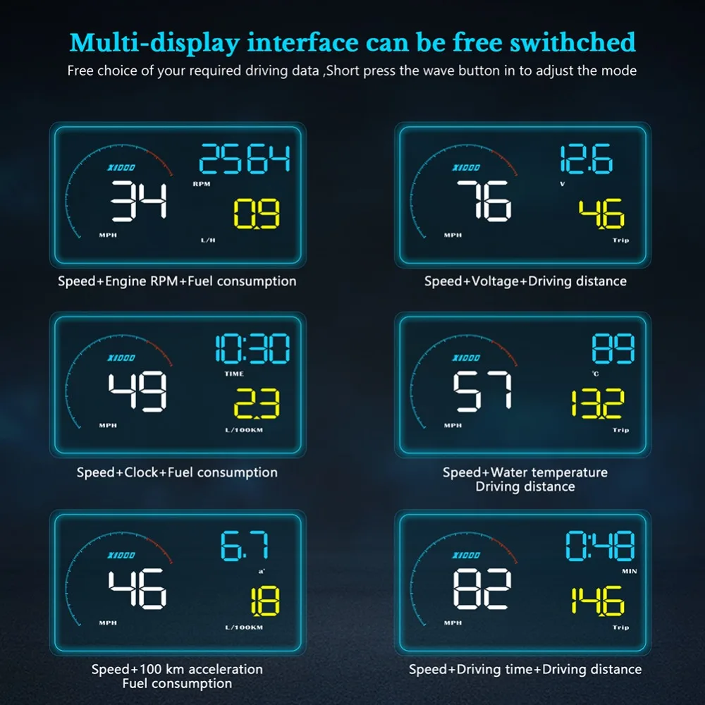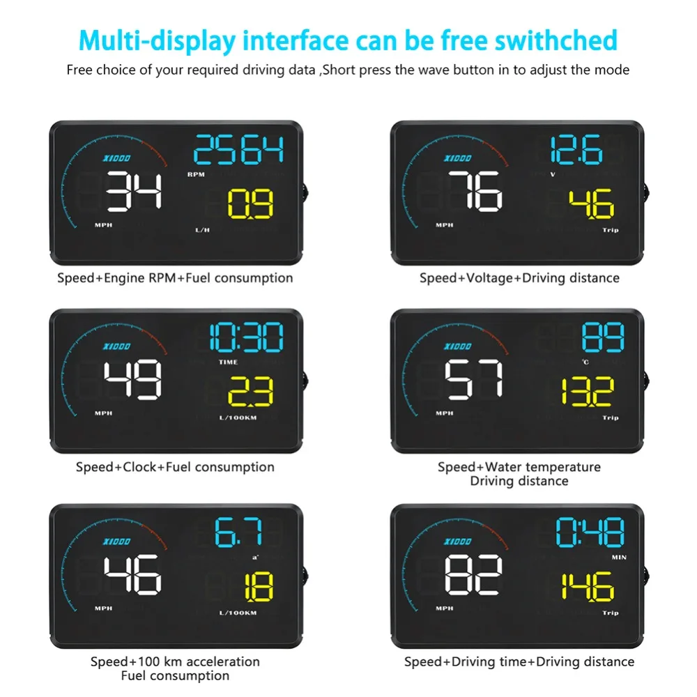 OBD2 автомобильный Hud Дисплей Измеритель Скорости 5,5 "HD светодио...
