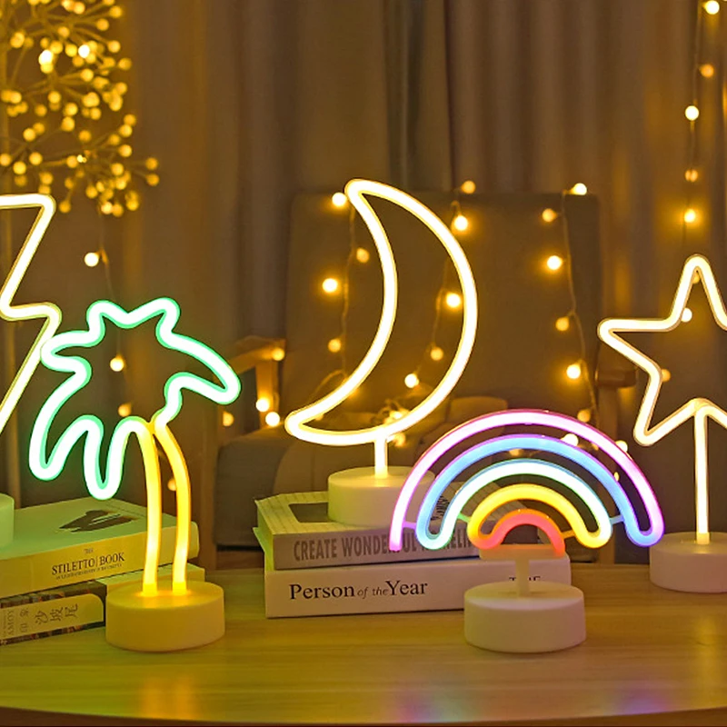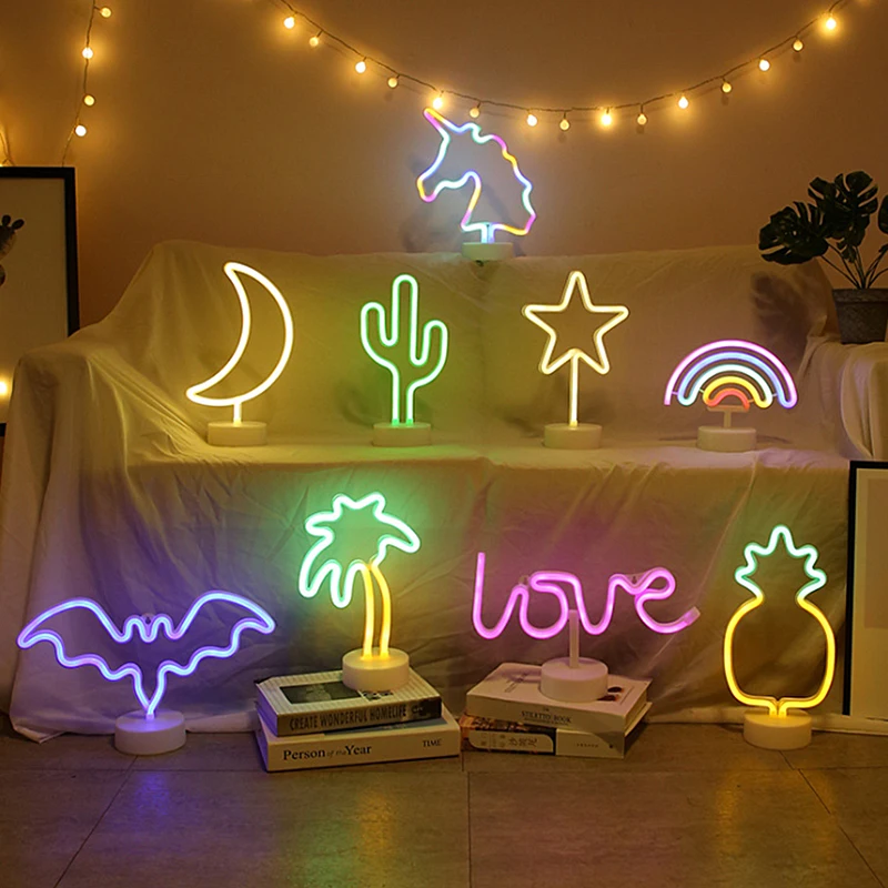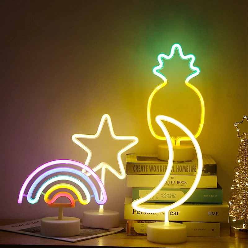 Ночник Радуга Звезда Неоновые Вывески Свет Фламинго Единорог Свадебный Бар Магазин Окно Комната Домашний Декор Лампа Настольная Лампа прикроватный светиьник настенный светильник статуэтки для интерьера для дома 2021