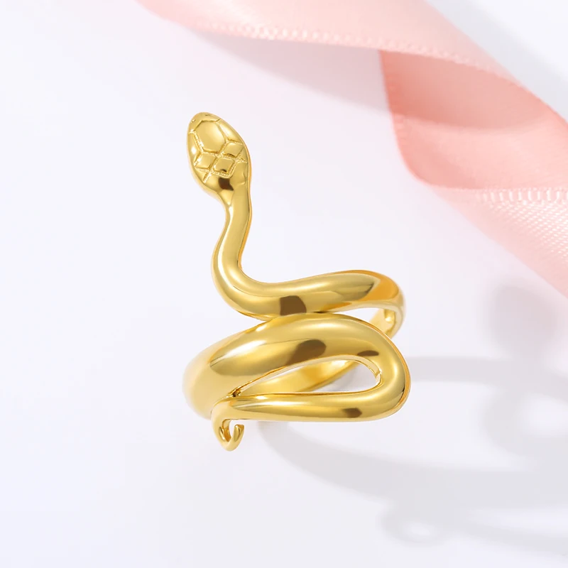 Женское Винтажное кольцо в виде змеи из нержавеющей стали, золотист...