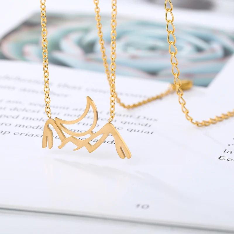 Ожерелье с полумесяцем и луной, из нержавеющей стали, розовое золото, ожерелья в форме гор