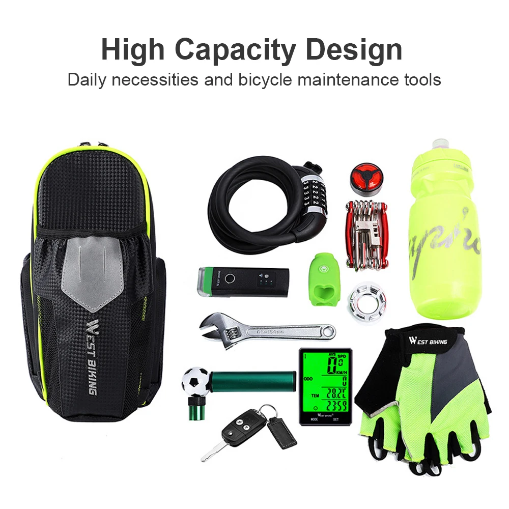 Bike Tail BagReflective Design; Large Capacity; With Bottle Pocket;