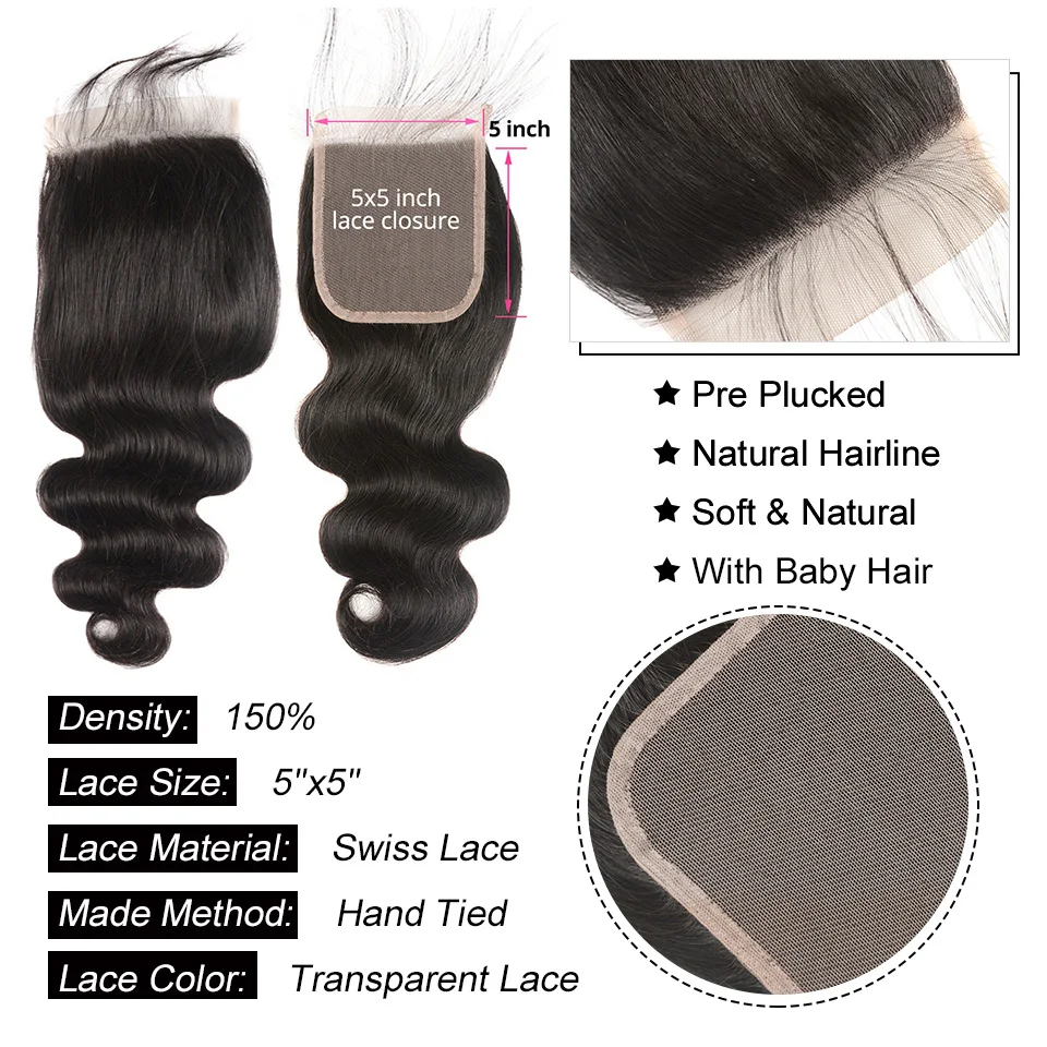 · Пакет для волос:Корпус3 пучка с закрытием 5X5