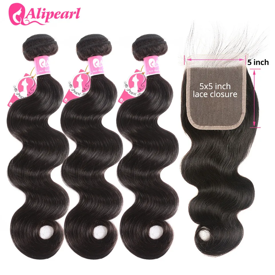 AliPearl волнистые волосы 3 пряди с 5x5 закрытыми HD прозрачными кружевами бразильские пряди человеческих волос с закрытием