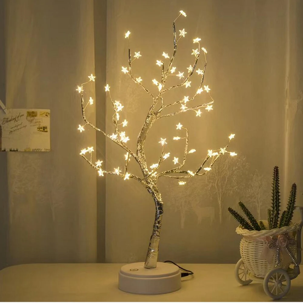 Модель: медная проволока светящееся дерево, дерево в форме листьев, дерево со звездами, дерево со снежинками, дерево с жемчужными бусинами, дерево с цветком вишни