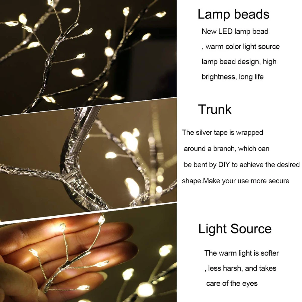 【USB/батарейный блок 】: Этот светильник на дереве может питаться от USB или 3 батареек AA (не входят в комплект), вы можете выбрать любой метод гибко, легко использовать. Важно: пожалуйста, отсоедините кабель USB при использовании аккумуляторов, в противном случае он будет не светильник, они могут не работать в одно и то же время!