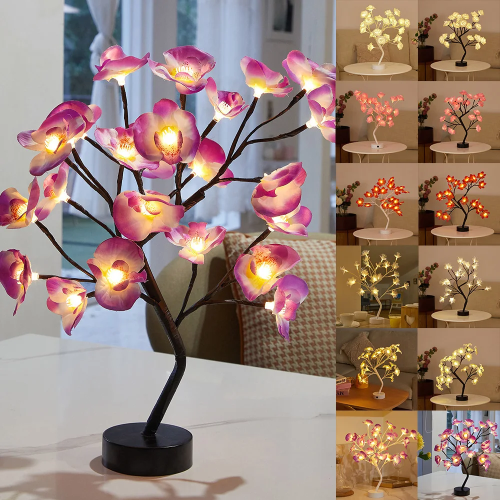 [Уникальное дерево с цветами или скобами] дизайн: дизайн в стиле бонсай, естественная форма дерева добавит Вашему дому больше энергии. 7 видов цветочных деревьев на выбор: дерево-светильник розы, кленовое дерево, оптическое дерево, Вишневое дерево и Орхидея-бабочка, дерево Франгипани.