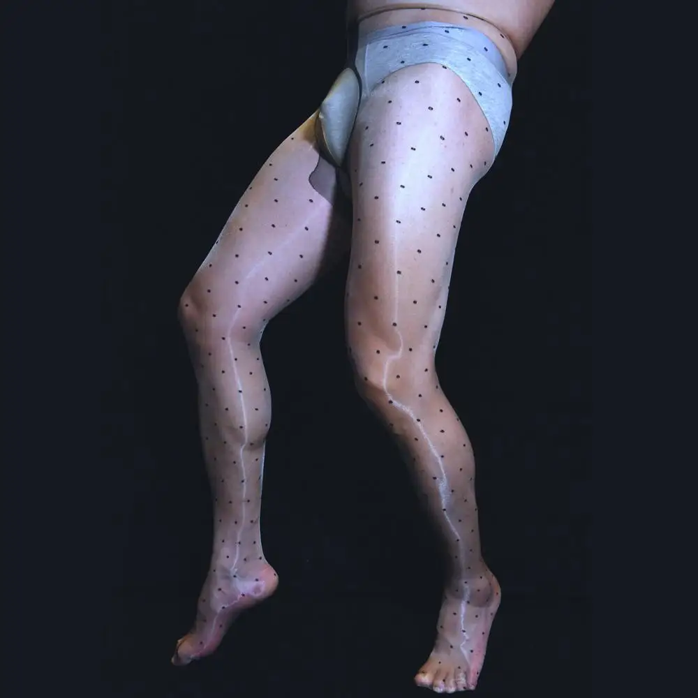 Тонкие блестящие колготки в горошек унисекс 1D, мужские колготки для пениса, горячие брюки, нейлоновые леггинсы без промежности, женские чулки