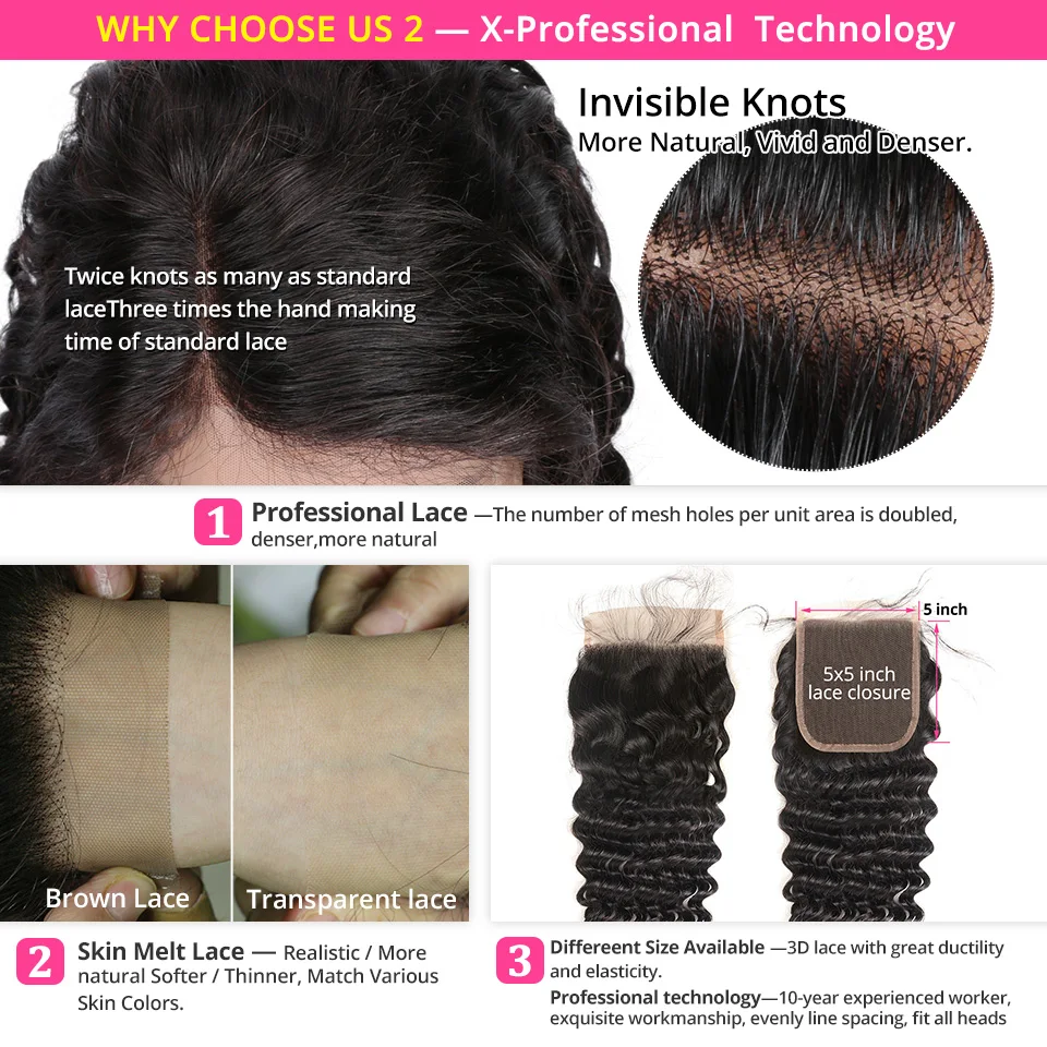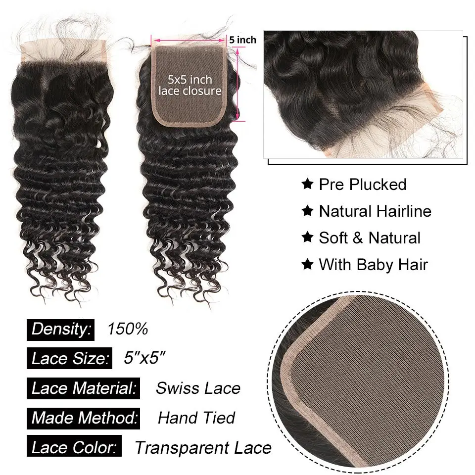 · Hair Package: Deep Wave 3 Bundles with 5X5 Closure