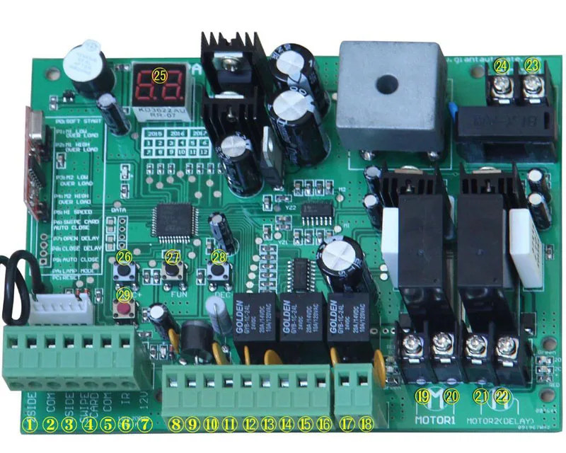 1. Чехол отключения питания: Применение ручное управление ключ, чтобы освободить сцепление для того, чтобыОткройте или закройте ворота вручную.2. Когда ворота заблокированы: ворота останавливаются.3. Дополнительно: контроллер открывания ворот может быть подключен к солнечной системе, аПредупреждающий светильник вспышки, фотоэлемент, резервная батарея, клавиатура и другое управление доступомУстройств.4. Контроль скорости: можно регулировать скорость открытия и закрытия ворот.5. Деликатный запуск: открывалка для ворот оснащена функцией мягкого пуска.6. Автоматическое закрытие: система открывания ворот оснащена функцией автоматического закрытия с регулируемой задержкой времени закрытия.7. Одиночные или двойные ворота: одиночные или двойные распашные ворота могут быть открыты.8. Несколько удаленных передатчиков: контроллер может легко разместитьНесколько уникальных дополнительных пультов для управления Открывателем распашных ворот9. Резервное копирование батареи: 24 В постоянного тока может быть включен резервный аккумулятор10. Дополнительные устройства: 24 В постоянного тока задвижка, фотоэлемент, клавиатура, фотоэлемент, pushКнопка, большой размер или маленький размер блока управления.11. Открывалка для ворот может быть настроена таким образом, чтобы обеспечить плавную бесшумную работу.12. Открывалка ворот может быть настроена для включения открытого состояния по умолчанию, илиСостояние закрытия по умолчанию зависит от размещения предоставленного оборудованияКронштейны.