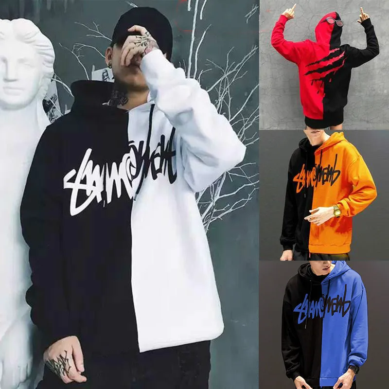 Толстовка мужская с принтом лап, свитшот с капюшоном в стиле пэчворк, модный Свободный свитшот для пар, уличная одежда в стиле оверсайз в стиле Харадзюку, Осень-зима