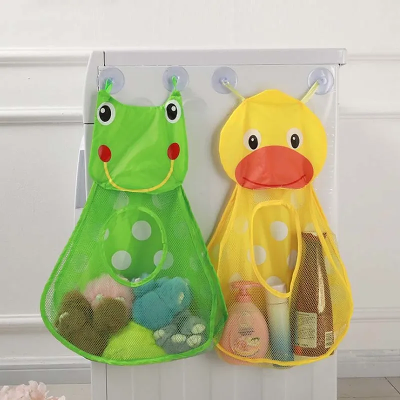 Мультфильм с изображением утки, лягушки для хранения игрушек, карманная сетка для ванной комнаты, присоска на стену, детский игрушечный органайзер, чистые туалетные принадлежности, аккуратные сумки
