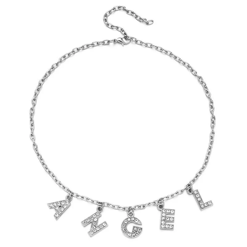 Ожерелье для женщин, с надписью ангела, с кристаллами, стразы, серебристого цвета