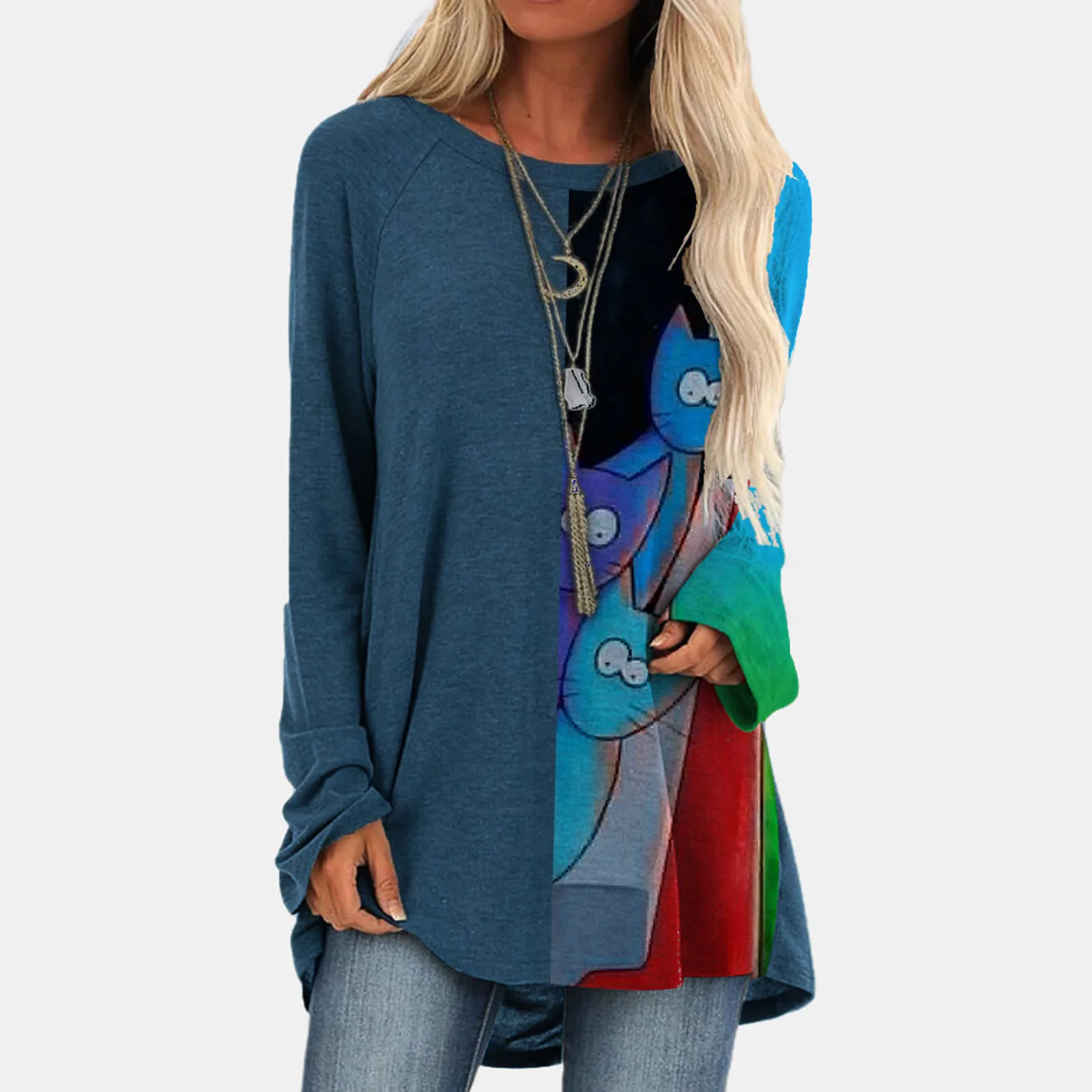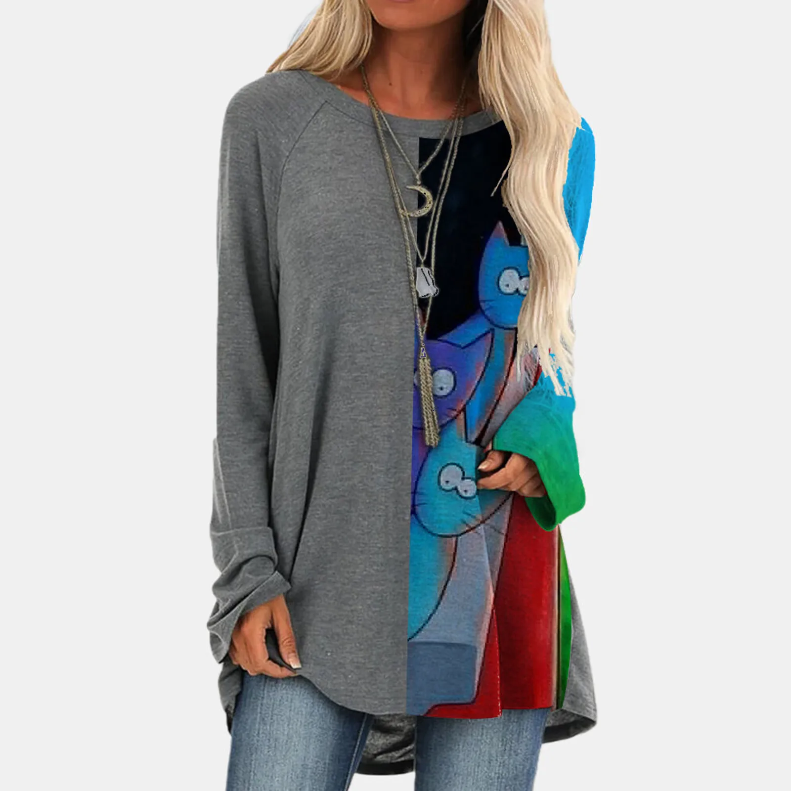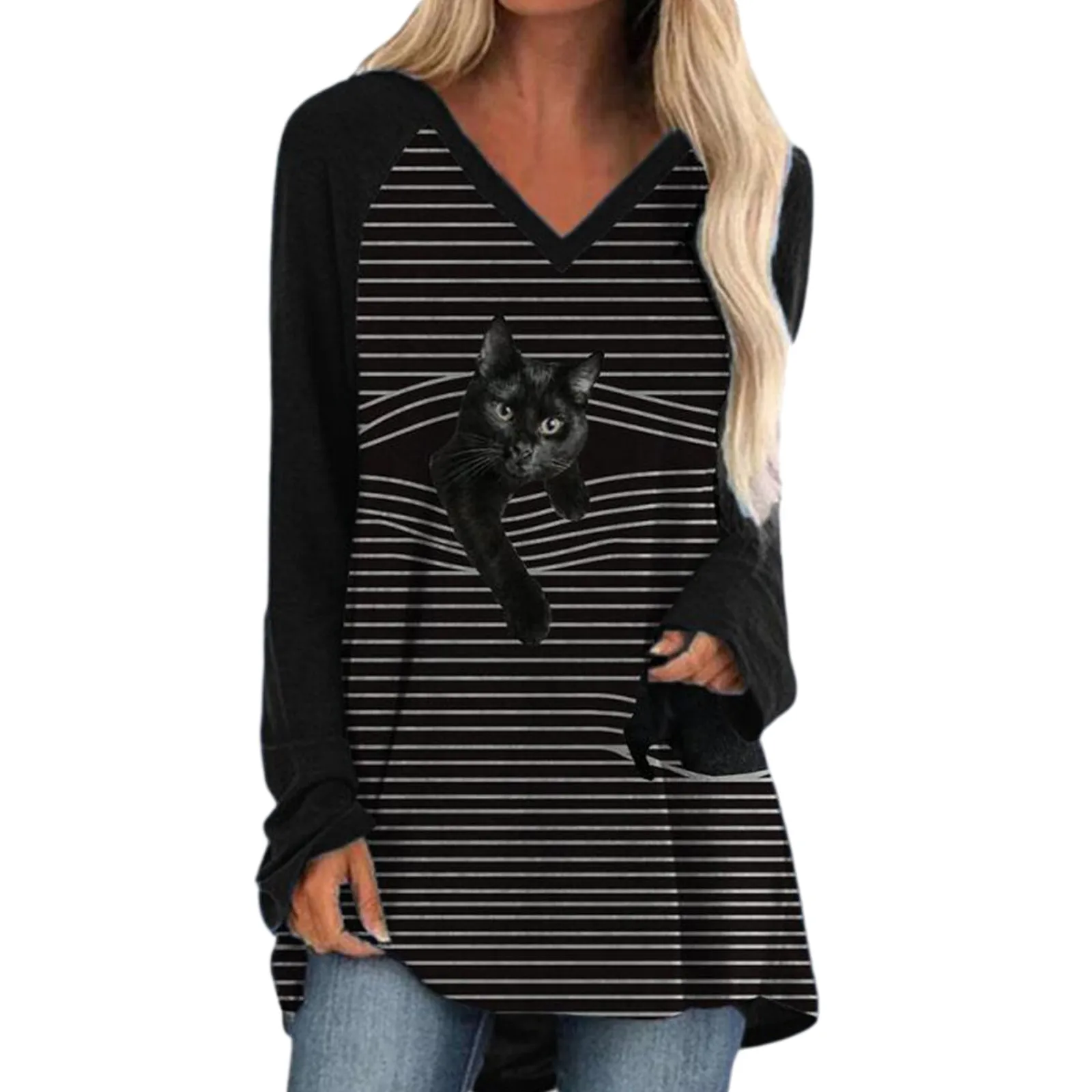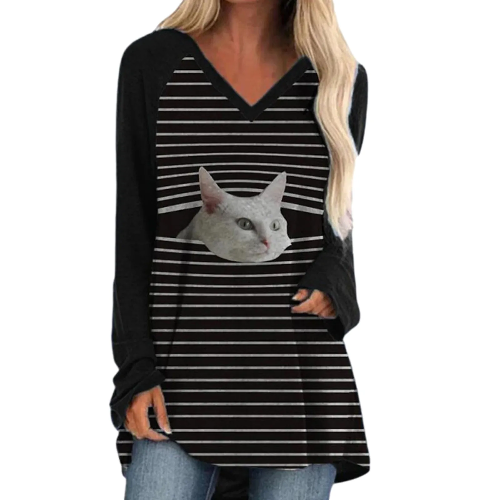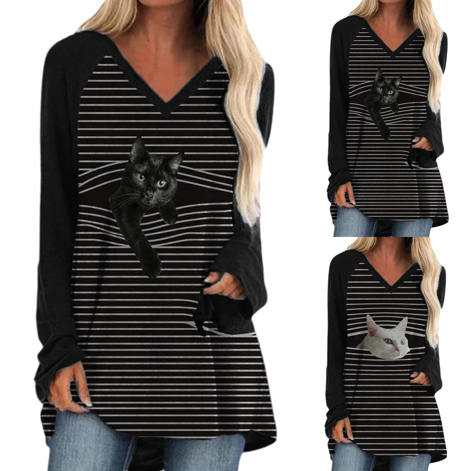 4 # Модные женские свитера с v-образным вырезом принт с милой кошкой с длинным рукавом Свободная Повседневная рубашка блузка Кофта Женская Kobieta Swetry свитера для женщин