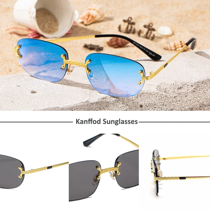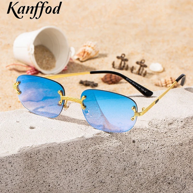 Солнцезащитные очки унисекс Kanffod, прямоугольные синие солнцезащитные очки без оправы, квадратные, металлические, зеркальные, в морском стиле, 2021