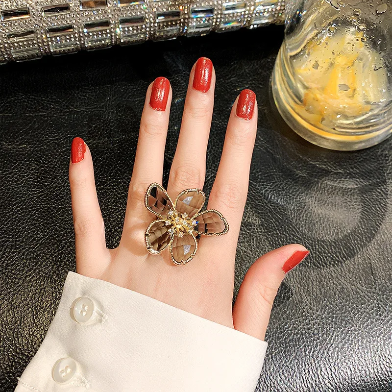 Ajojewel Большой Хрустальный цветок кольцо регулируемое коктейльные кольца для женщин Anel Свадебная вечеринка годовой украшения для женщин