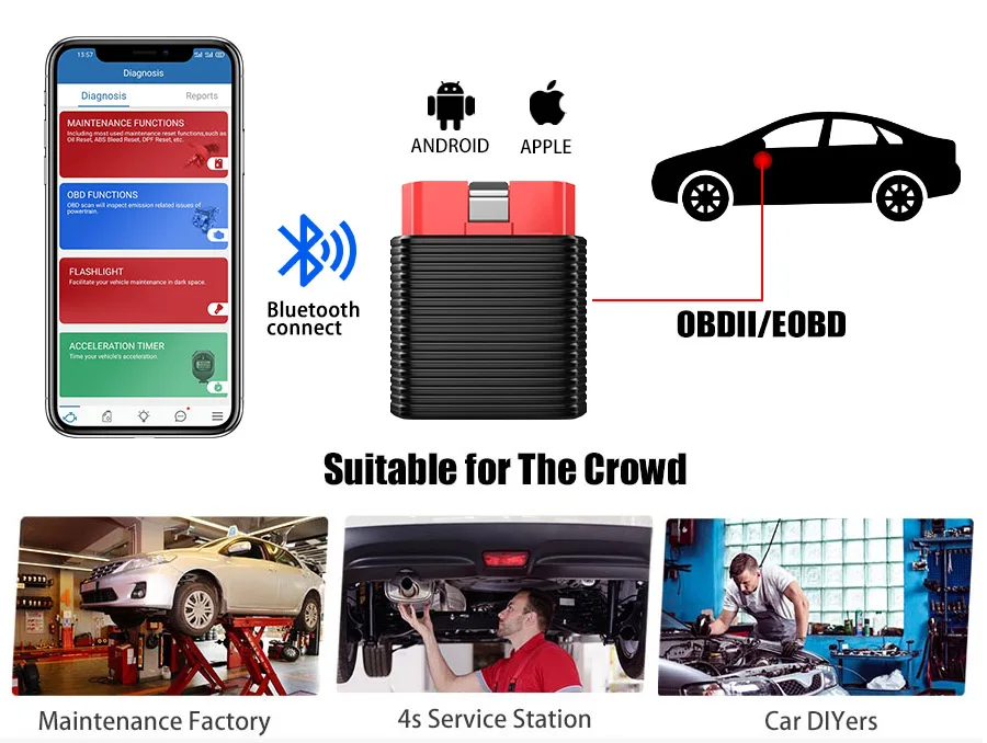Благодаря превосходной диагностике всех систем этот универсальный сканер obd2 может использоваться для чтения всех доступных систем ЭБУ информации для облегчения диагностики транспортного средства.