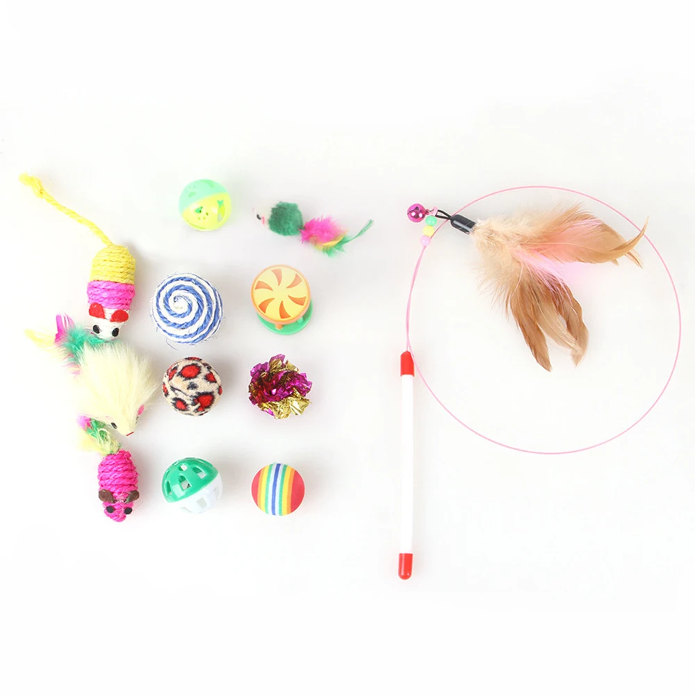 12/20 шт./компл. игрушечная кошачья палка-игрушка для кота Мышь игрушка сизаль мяч домашнее животное игрушка для кошки "Дразнилка" игрушки перо Лен Дразнилка палка кошачьи интерактивные игрушки