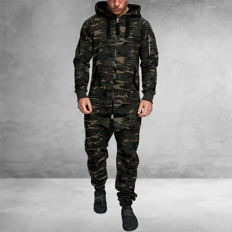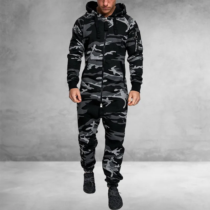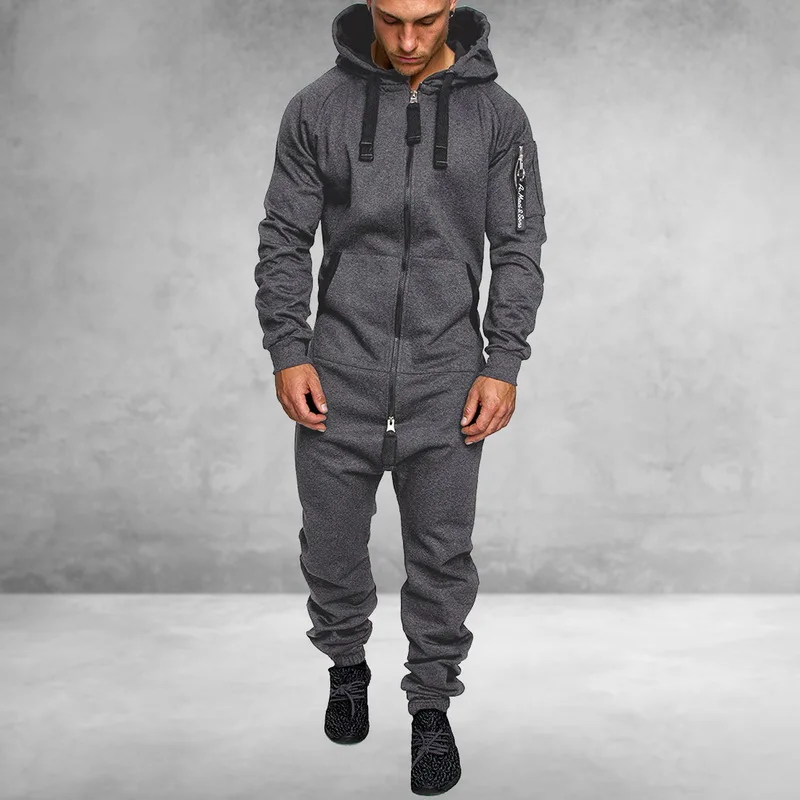 Комбинезон мужской с капюшоном, однотонный комбинезон с длинным рукавом, одежда для улицы