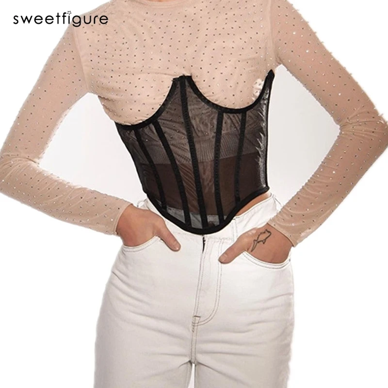 Новый женский бандажный корсет, тренажер для талии, сексуальное Сетчатое Корректирующее белье, подгрудный женский уличный пояс, приталенный женский корректирующий фигуру