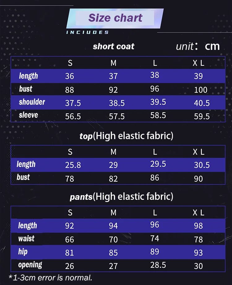 Включает:Пальто + нижнее белье + штаны + перчатки + манжета + носки + ремень