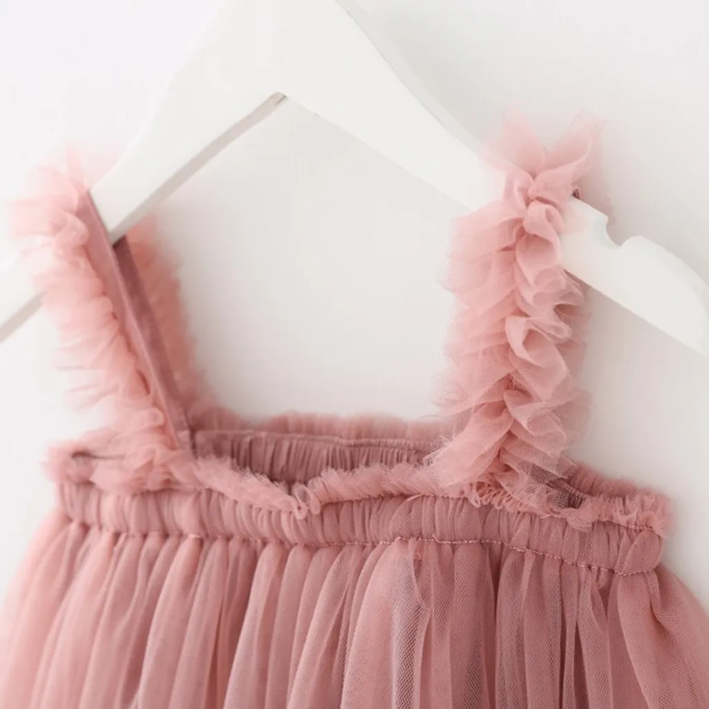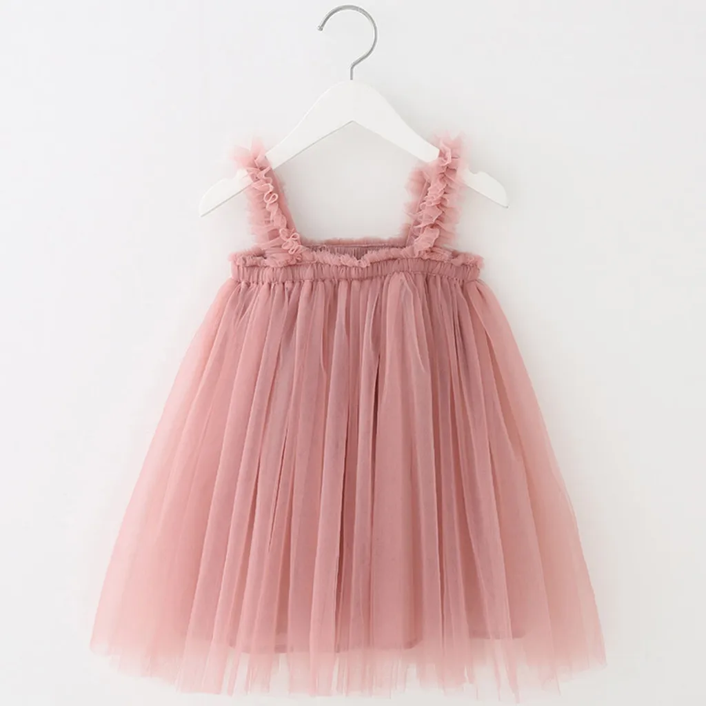 Детское однотонное платье принцессы на бретельках из тюля для маленьких девочек