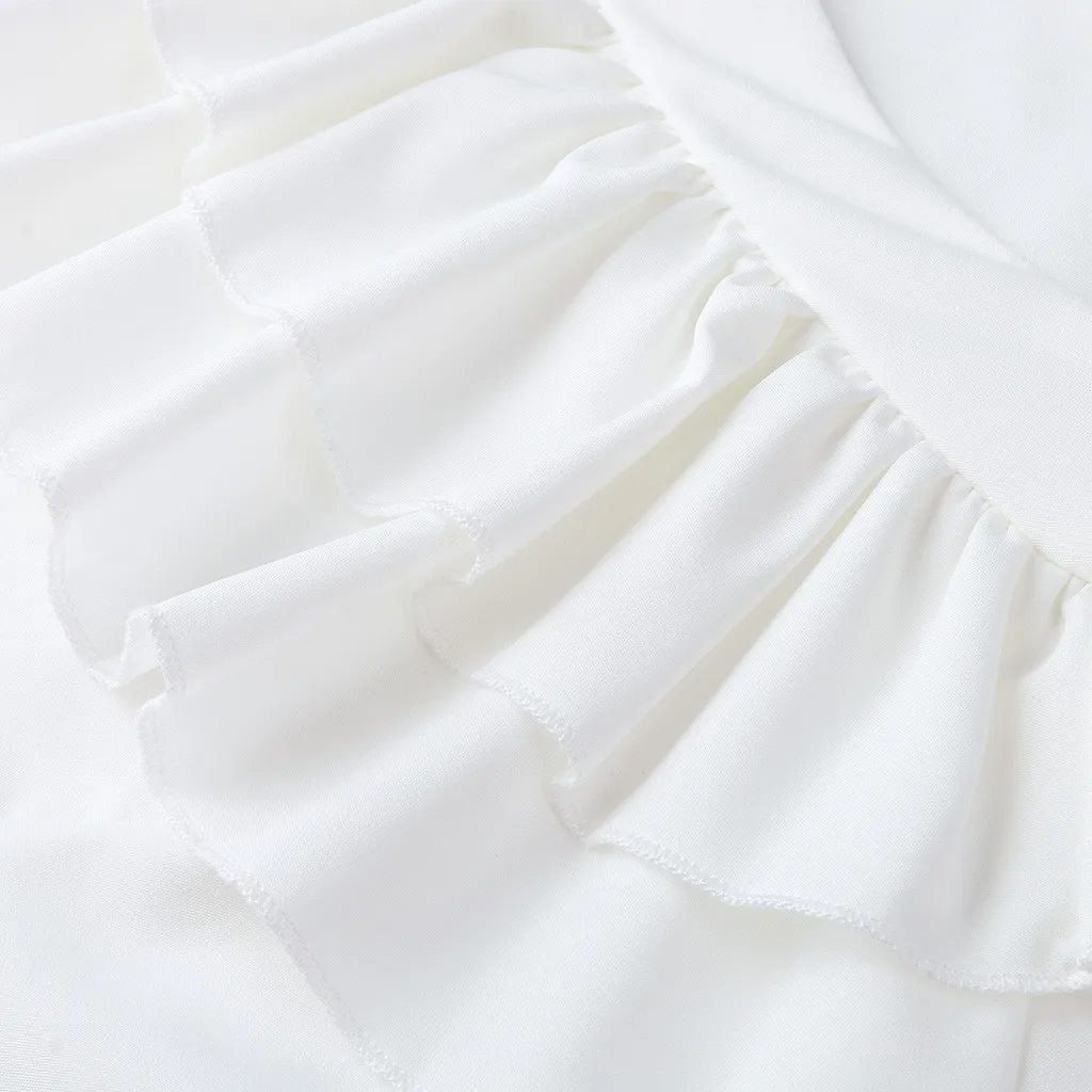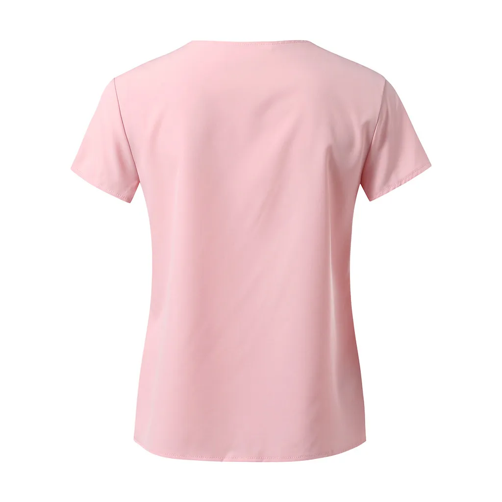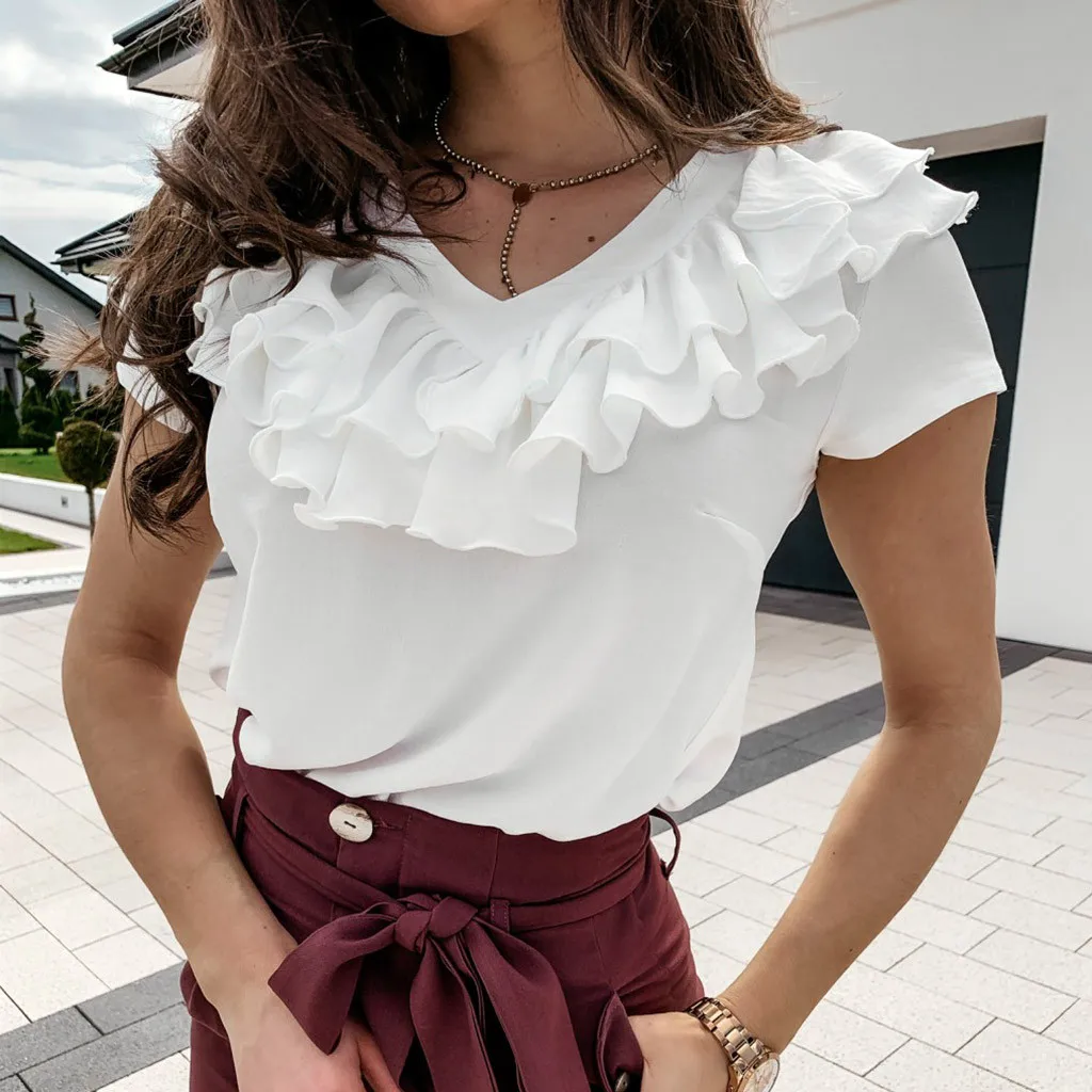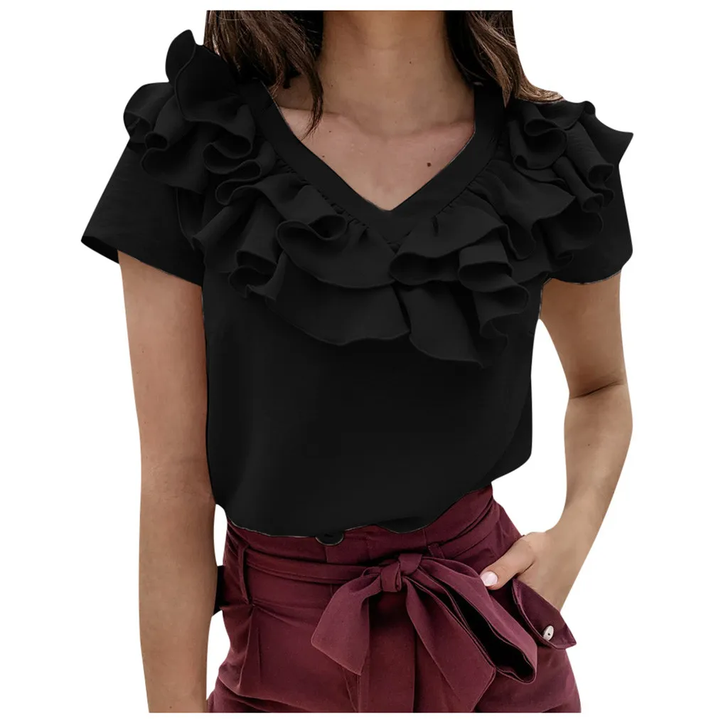 3. V-образный вырез с оборками Шея,КороткийРукав, Твердый, Натяжная застежка. A Базовый Топ с небольшой яркостью, sНе модно. Он имеет идеальную длину, чтобы вы могли использовать его в своих штанах или шортах.