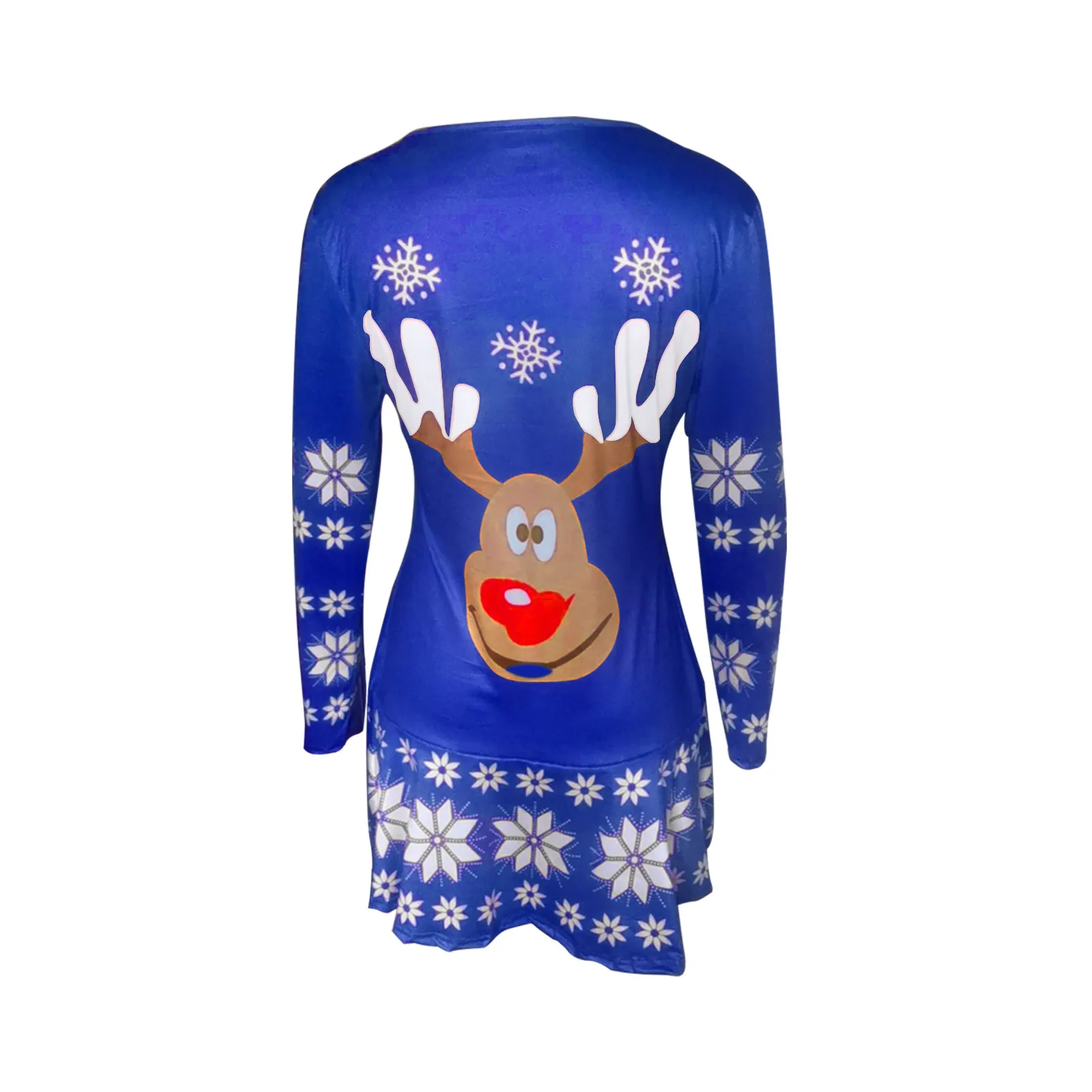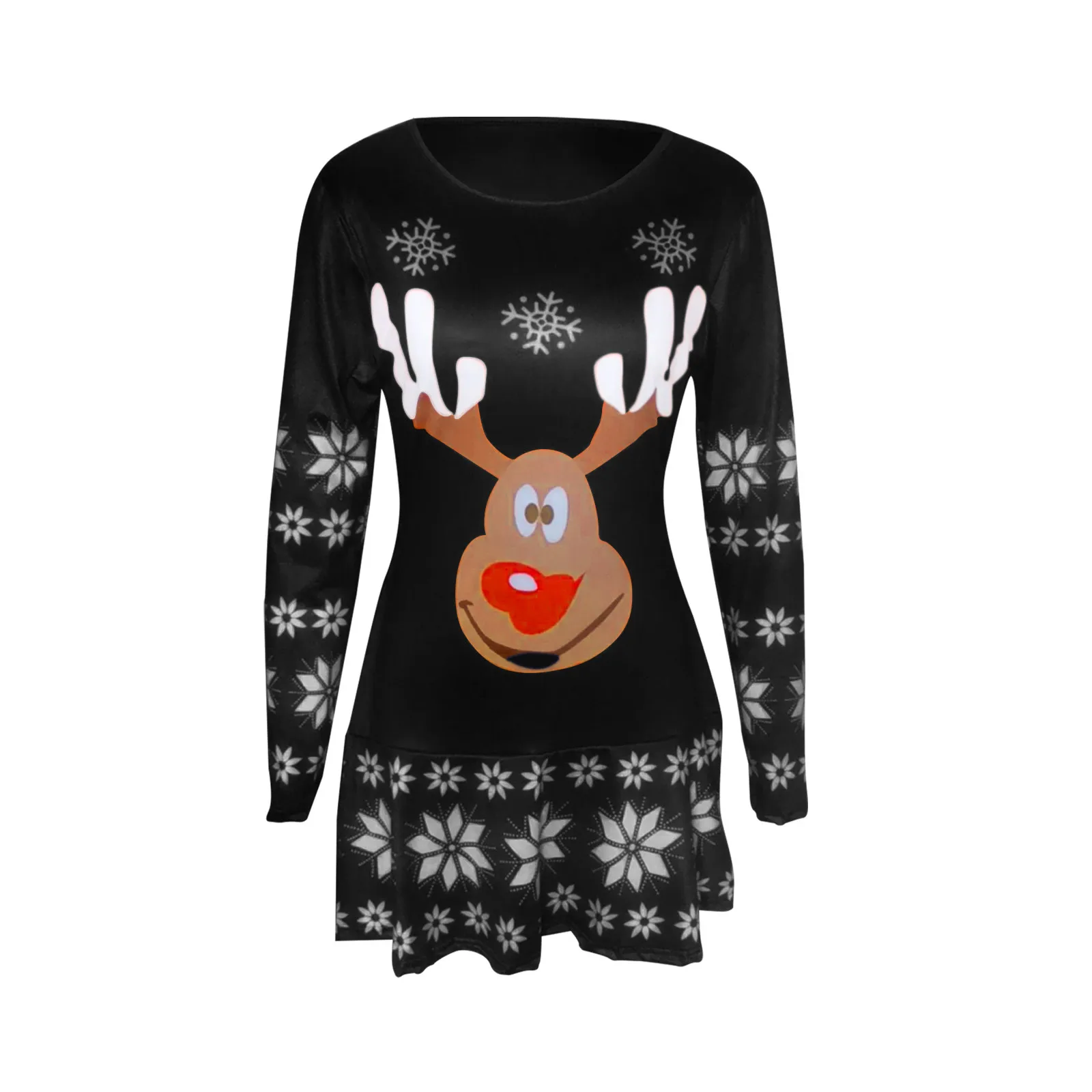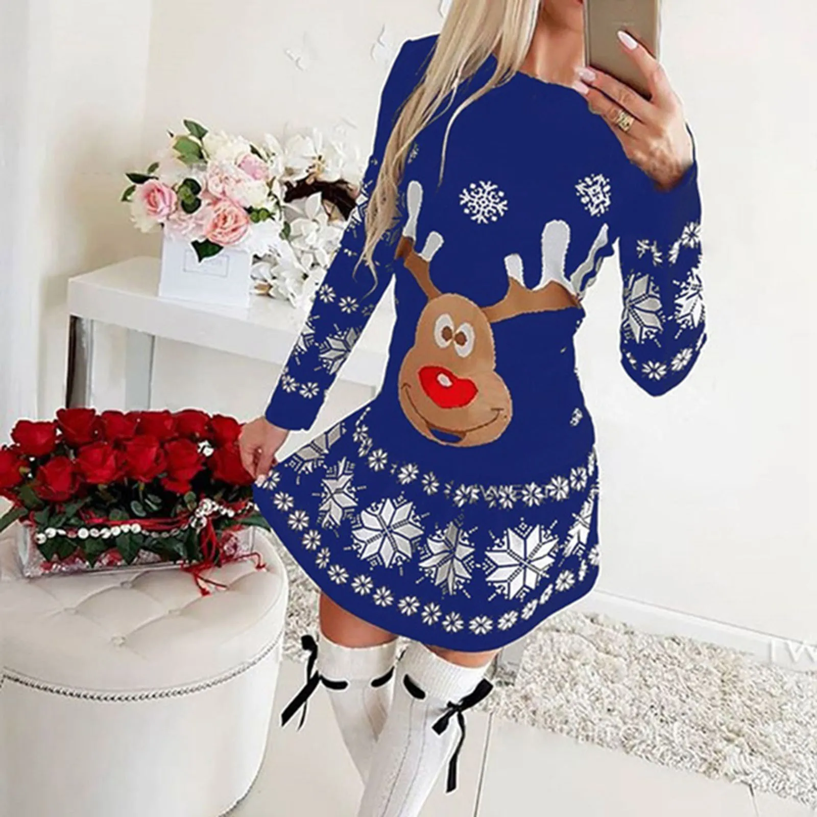 Женская рождественская одежда с длинными рукавами и круглым вырезом Эластичные платья со снежинками для рождественской вечеринки