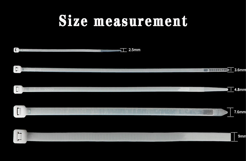 Название продукта: нейлоновая кабельная стяжка Материал: нейлон 66 Модель: 3 4 5 8 мм Ширина: 4,8 мм Длина: 60/80/100/120/150/200/250/300/350/400/450/500 мм Цвета: белый, черный Количество: 100 шт. Диаметр луча: 0,43/0,66/0,78/1/1,3/1,9 дюймов Рабочая температура: от-35 ℃ до 85 ℃ Прочность на растяжение: 10 фунтов 4 кг Срок службы: 3-5 лет Описание количества товара: Так как он упакован вручную, Пожалуйста, учитывайте погрешность в диапазоне количества посылка в размере 2% или-2%, спасибо. Если ваш заказ срочный, мы настоятельно рекомендуем вам использовать более быструю и надежную Почта Китая зарегистрированной авиапочтой, ePacket, AliExpress стандартную транспортировку, AliExpress экономичную транспортировку. Если вам нужна специальная настройка или Массовая покупка, пожалуйста, свяжитесь с нами по льготной цене. Спасибо, что посетили