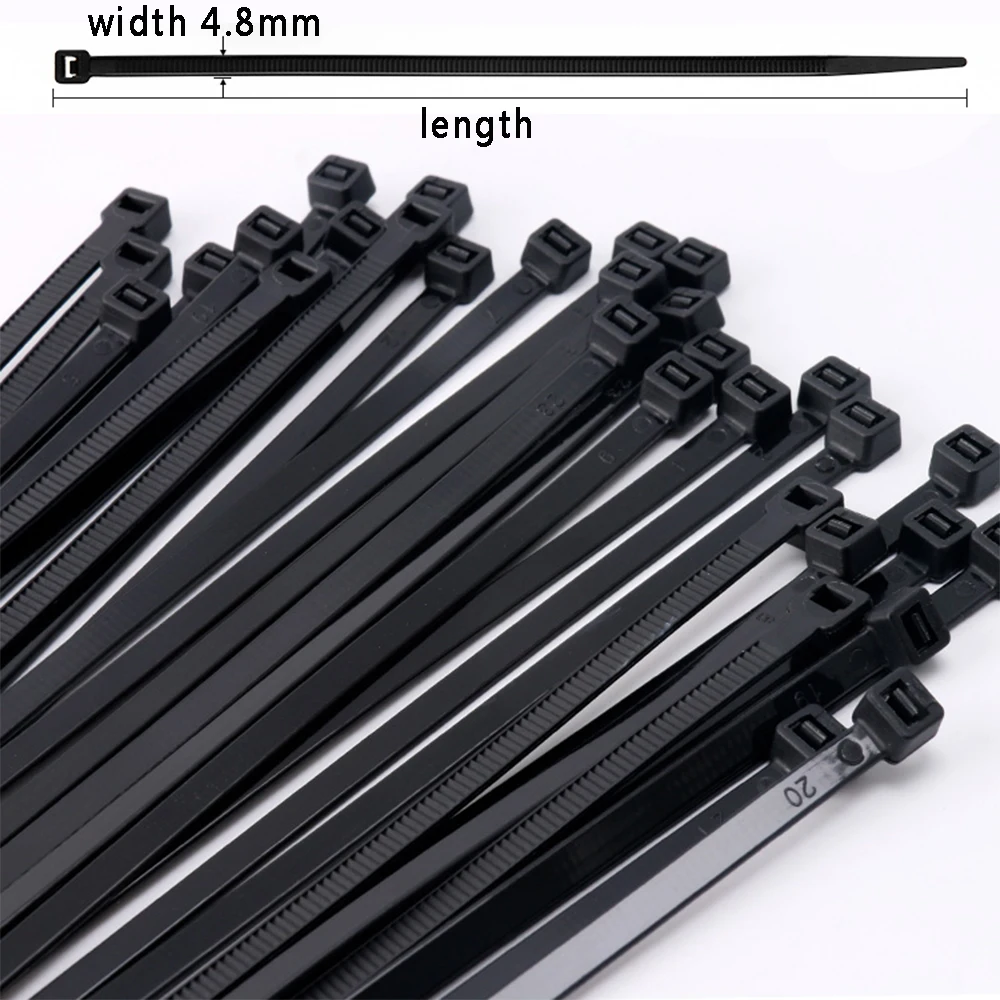 100PCS4.8x150 пластиковые защитные пломбы с днократной блокировкой для изготовления нейлоновых кабельных стяжек черного и белого цвета стандартную ширину 4,8 кабельные стяжки фиксированное кольцо кабельные стяжки 4,8x200 4.8x300