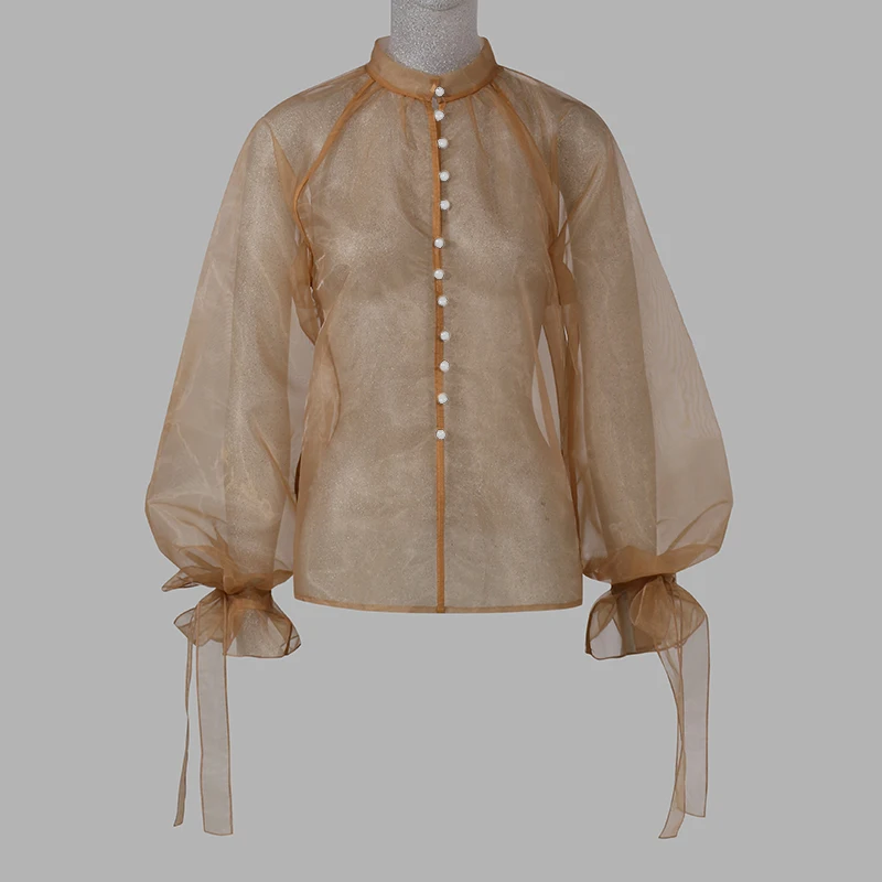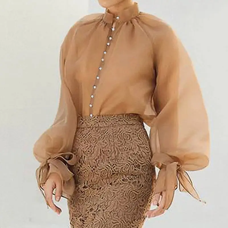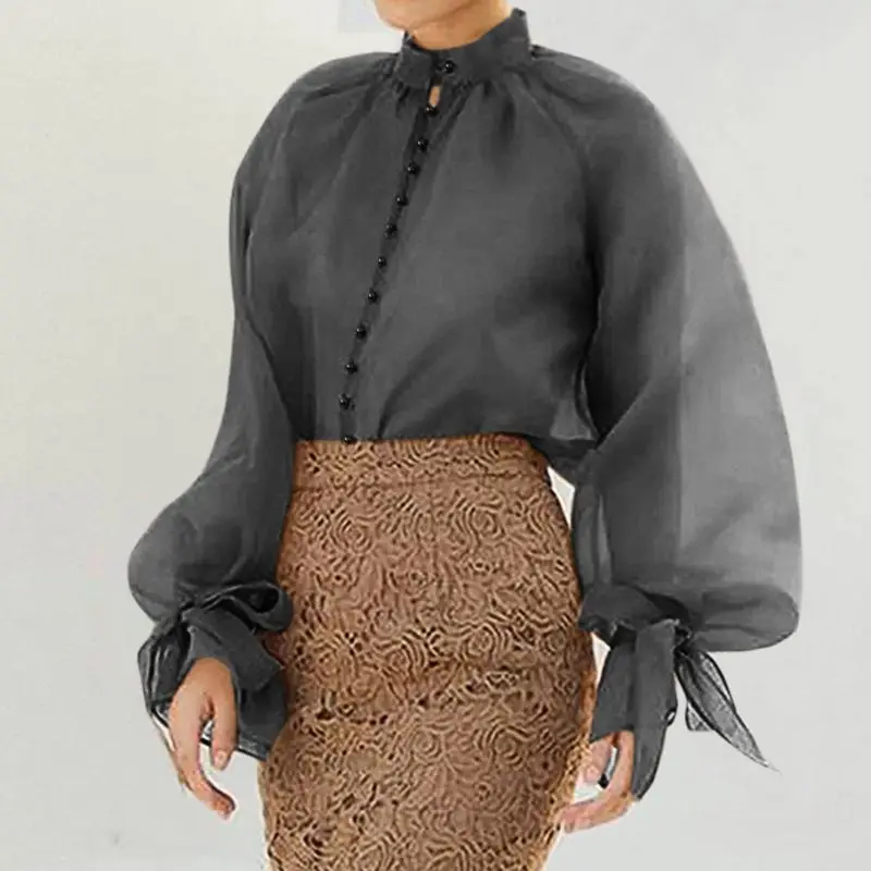 Номер моделиStand Collar Lantern Sleeve Party Club Blusas