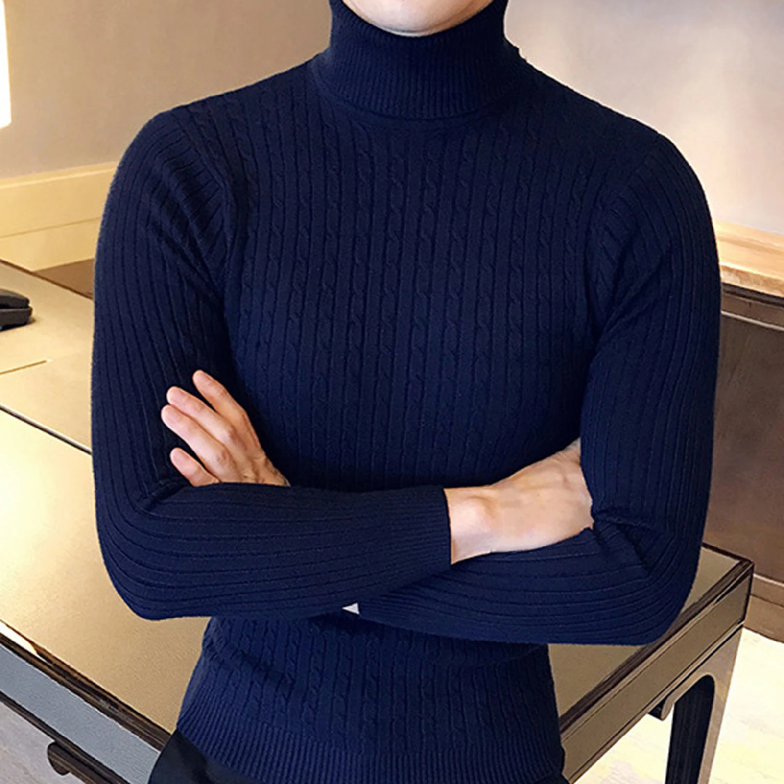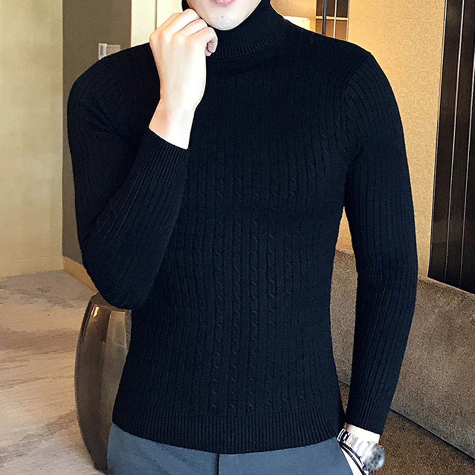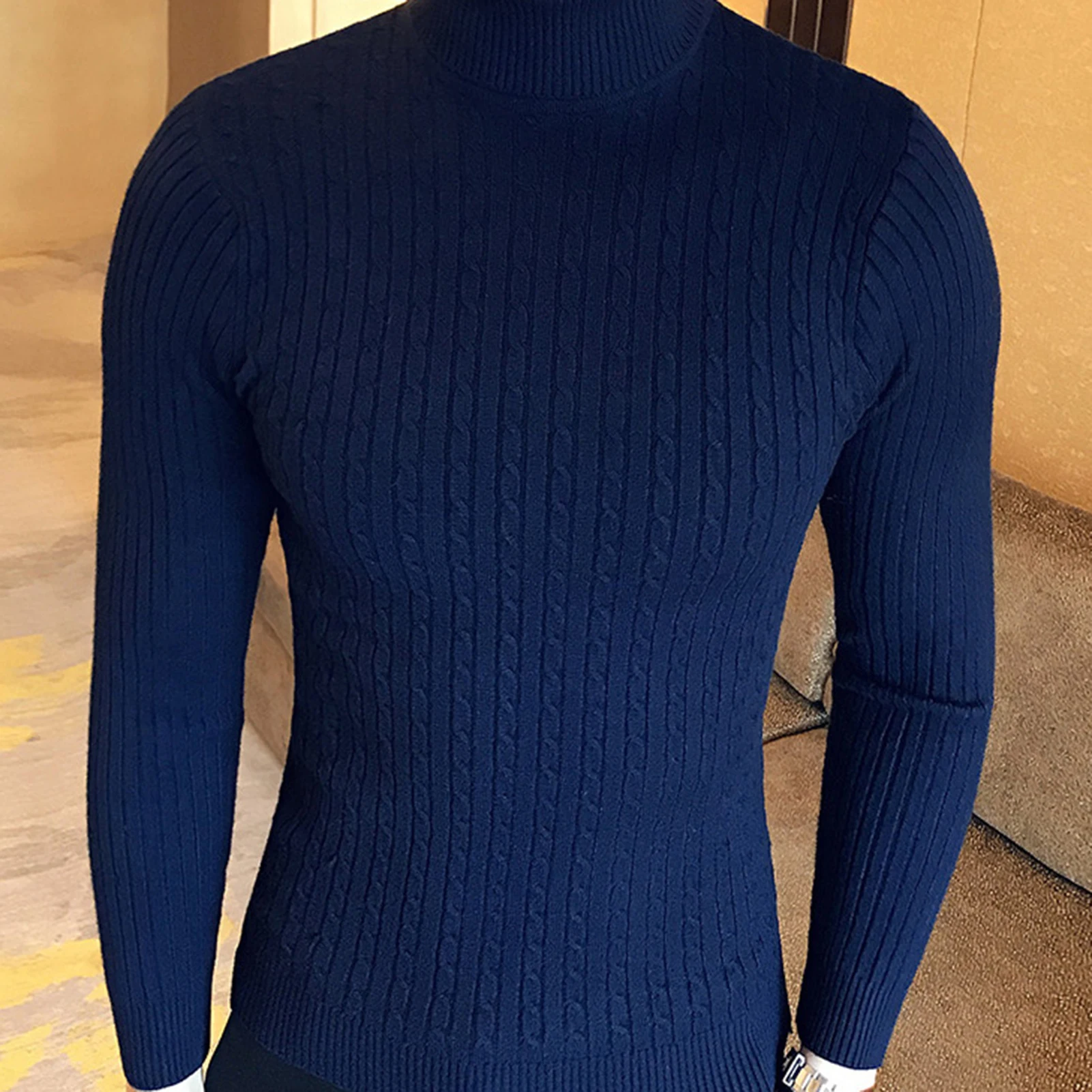 Свитер мужской зимний, с высоким воротом и длинными рукавами, теплый, приталенный пуловер, вязаный свитер, размера плюс