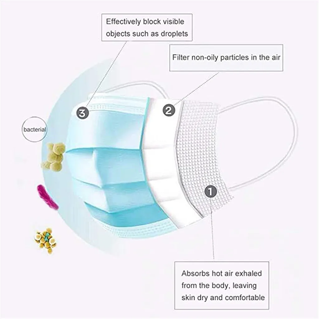 Одноразовые маски для лица, не ткали 3 Слои фильтр Маска из дышащег...