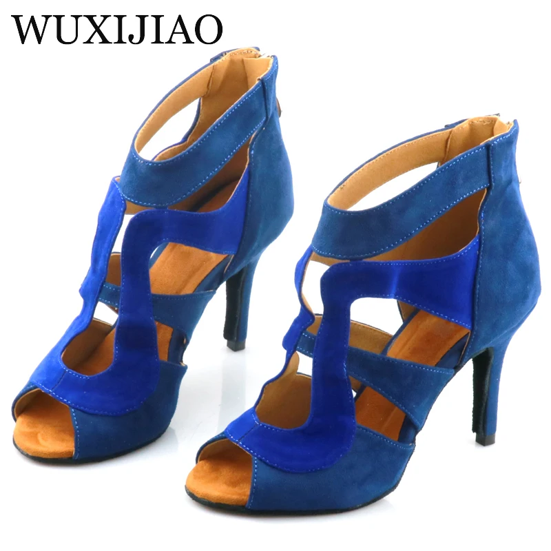 Синие замшевые танцевальные туфли WUXIJIAO для латиноамериканских танцев, обувь для спорта в помещении, профессиональная танцевальная обувь